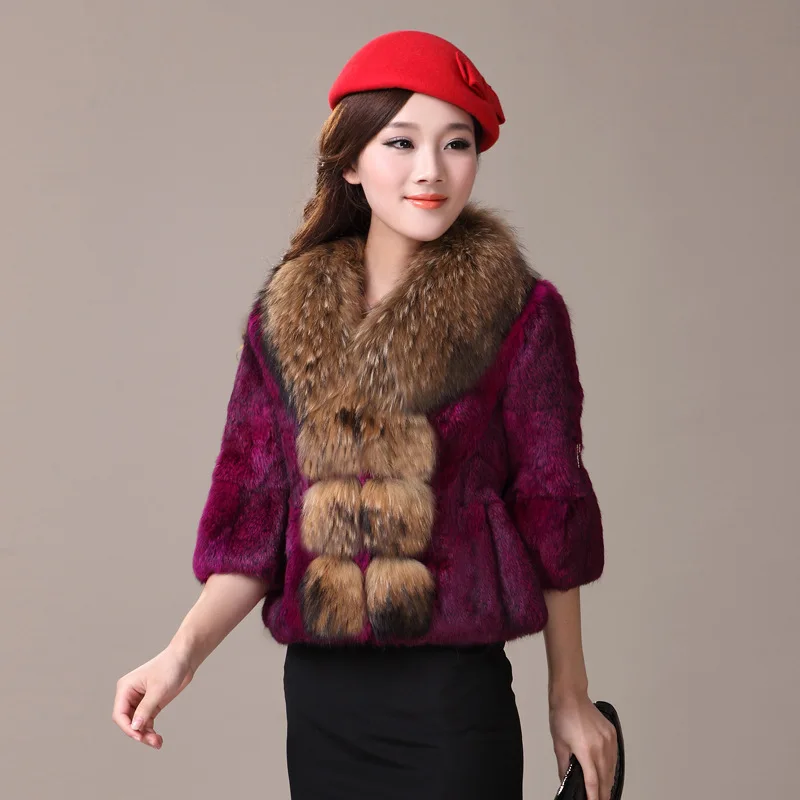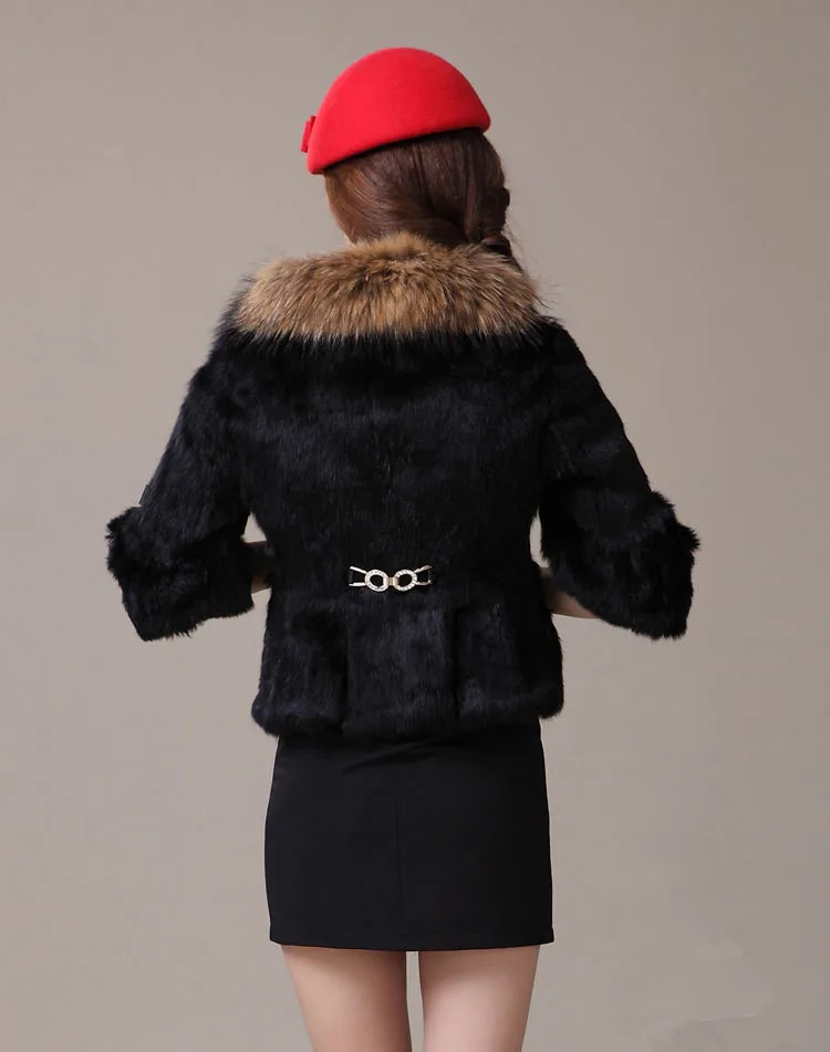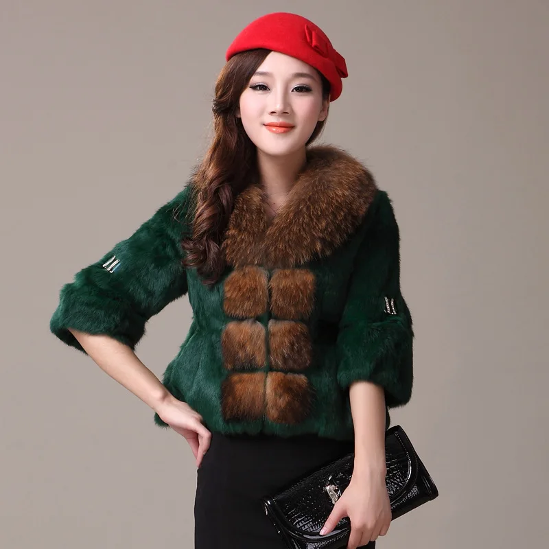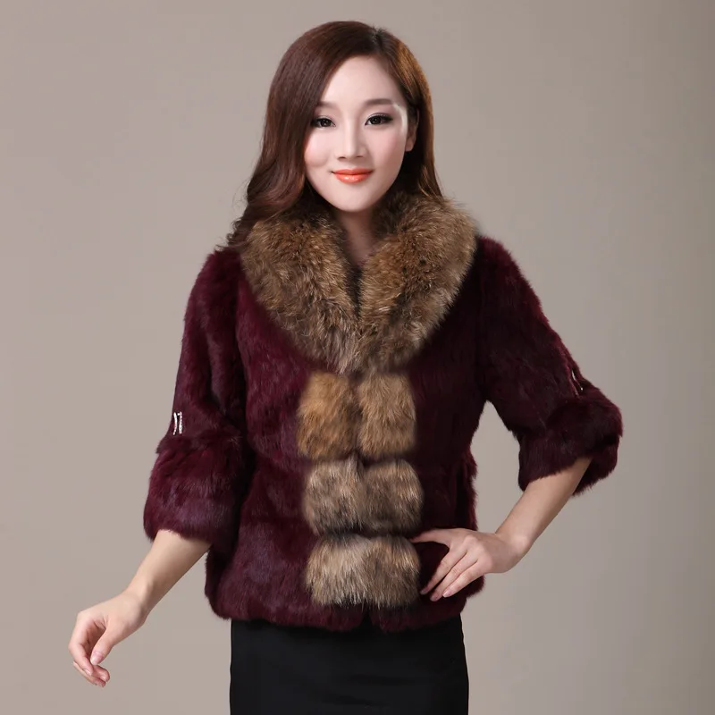 2020 Genuine Rabbit Fur Coat Women Full Pelt Rabbit Fur Jacket Female Large Real Raccoon Fur Collar Winter Outwear YQ826