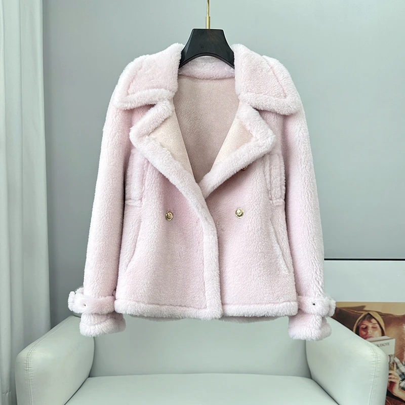 PUDI 2023 New Design Genuine Sheep Shearing Coat Women Fashion Warm Real Wool Fur Knitted Jacket CT368