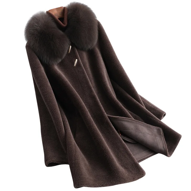 100% Wool Coat Women Winter 2022 Trend Real Wool Fur Jackets Ladies Midi Long Coat Women Fox Fur Collar Overcoat Femal Coats 6XL