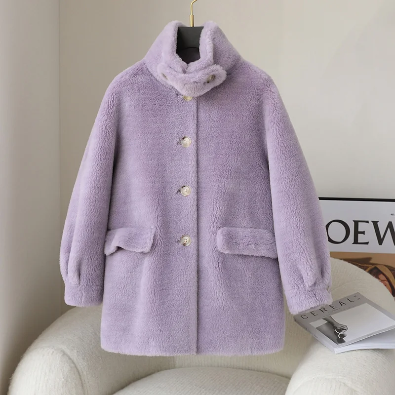 PDUI Women Real Wool Fur Coat Winter Warm Female Girl Sheep Shearing Jacket Parka OverCoat CT144
