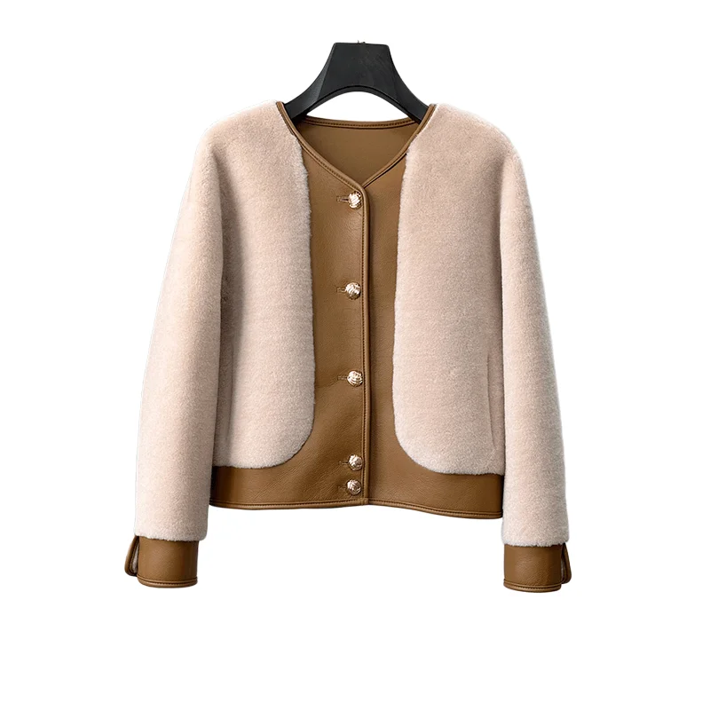 PUDI Women Design Genuine Wool Fur Soft Jacket With PU Leather Winter Warm Fashion Coat CT343