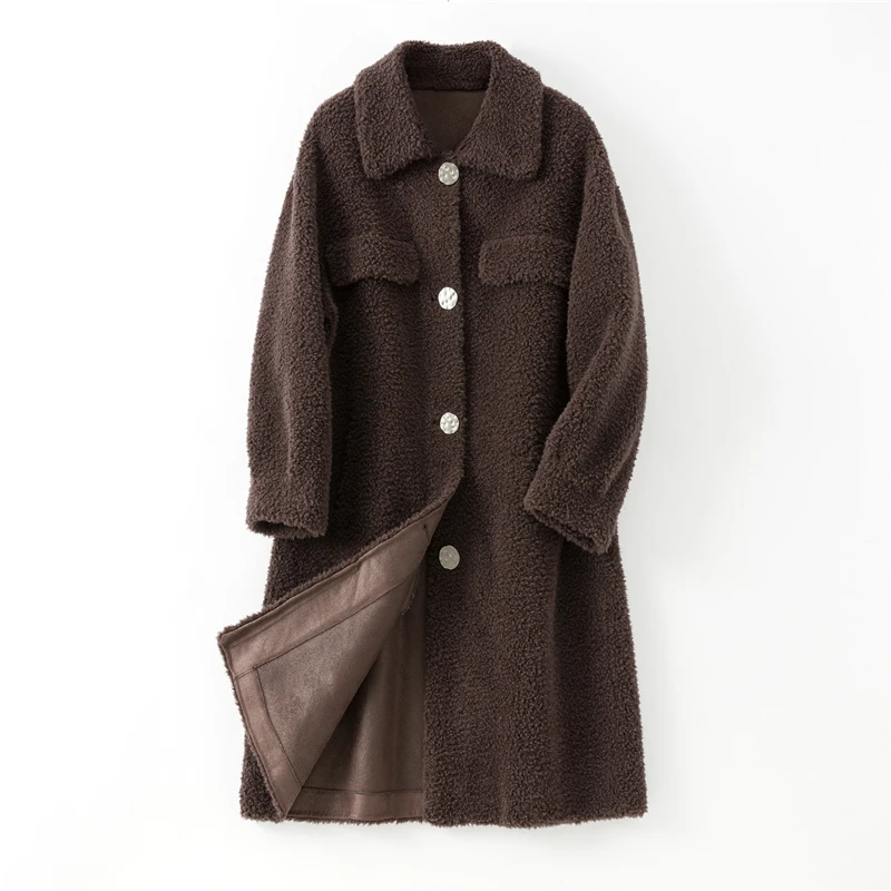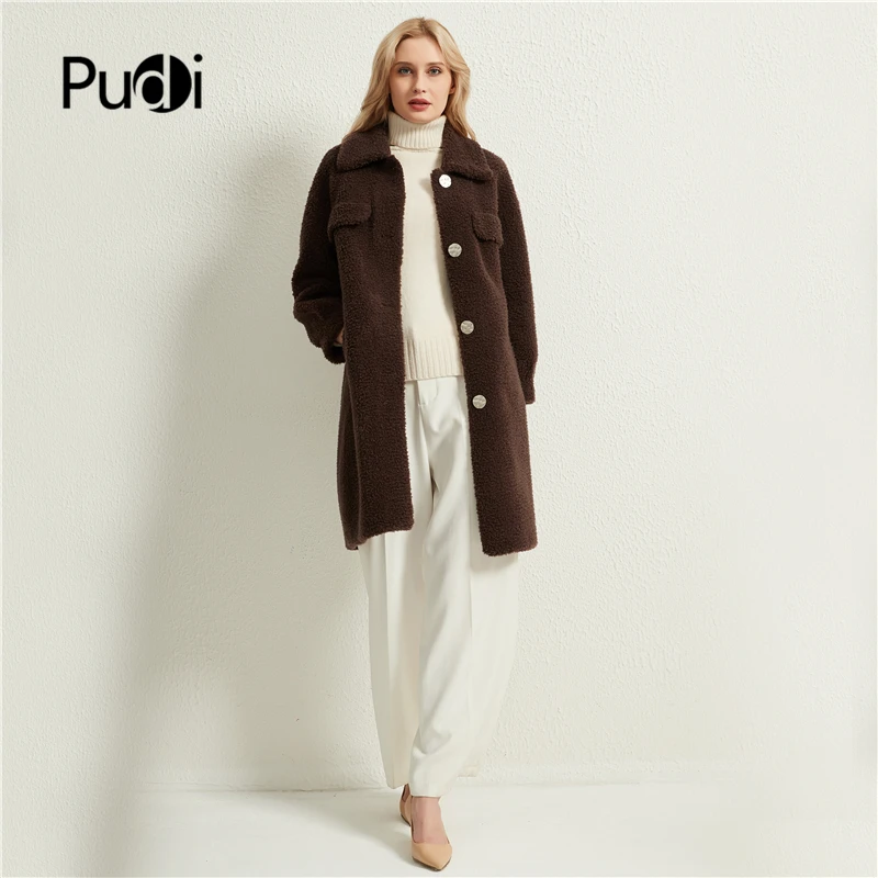 Pudi Women Long Real Sheep Fur Coat Jacket Female Winter Wool Fur Jackets Parka Trench H98917