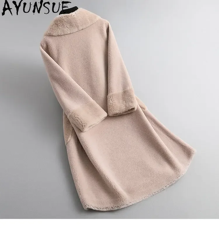 Women Autumn Winter 100% Wool Jacket Mid-length Sheep Shearing Coat Elegant Fur Coats Korean Fashion Wool Jackets Abrigos Mujer