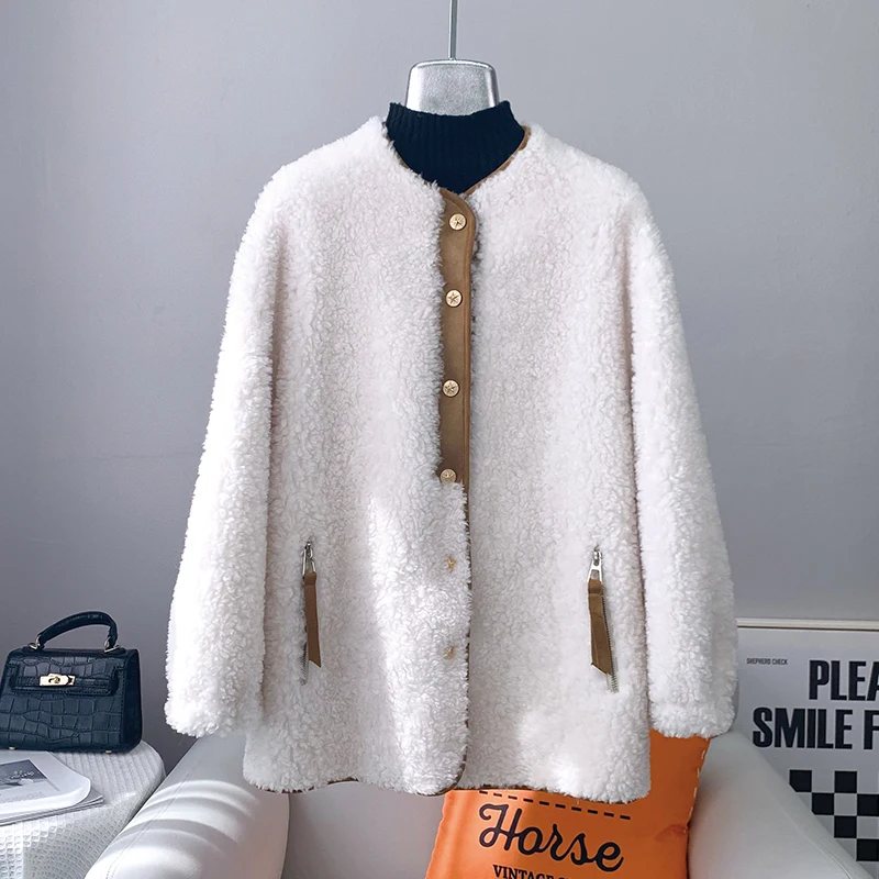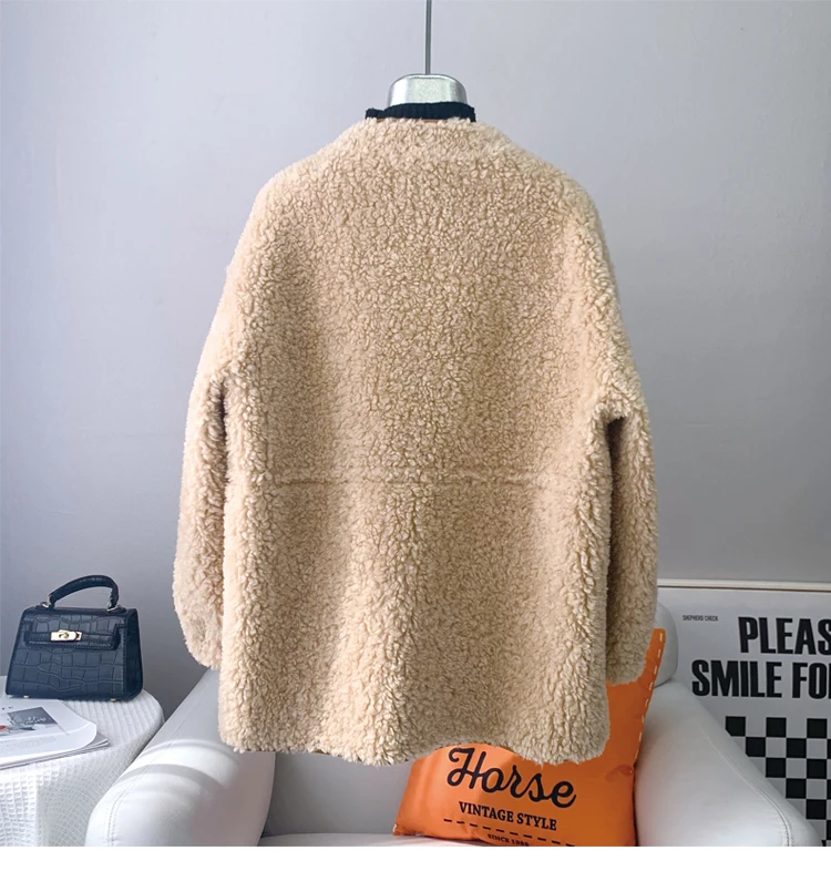 2023 Hot Sale Lady Girl Sheep Shearling Warm Coats Female Women Lamb Wool Fur Overcoat Winter Long Jacket JT3205