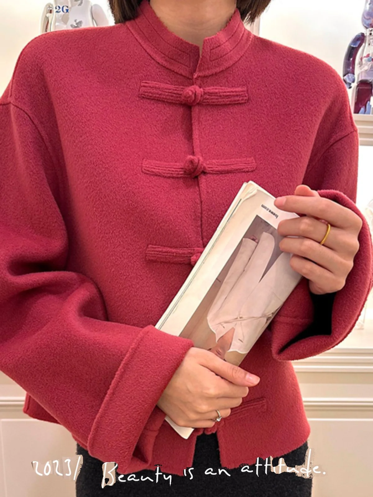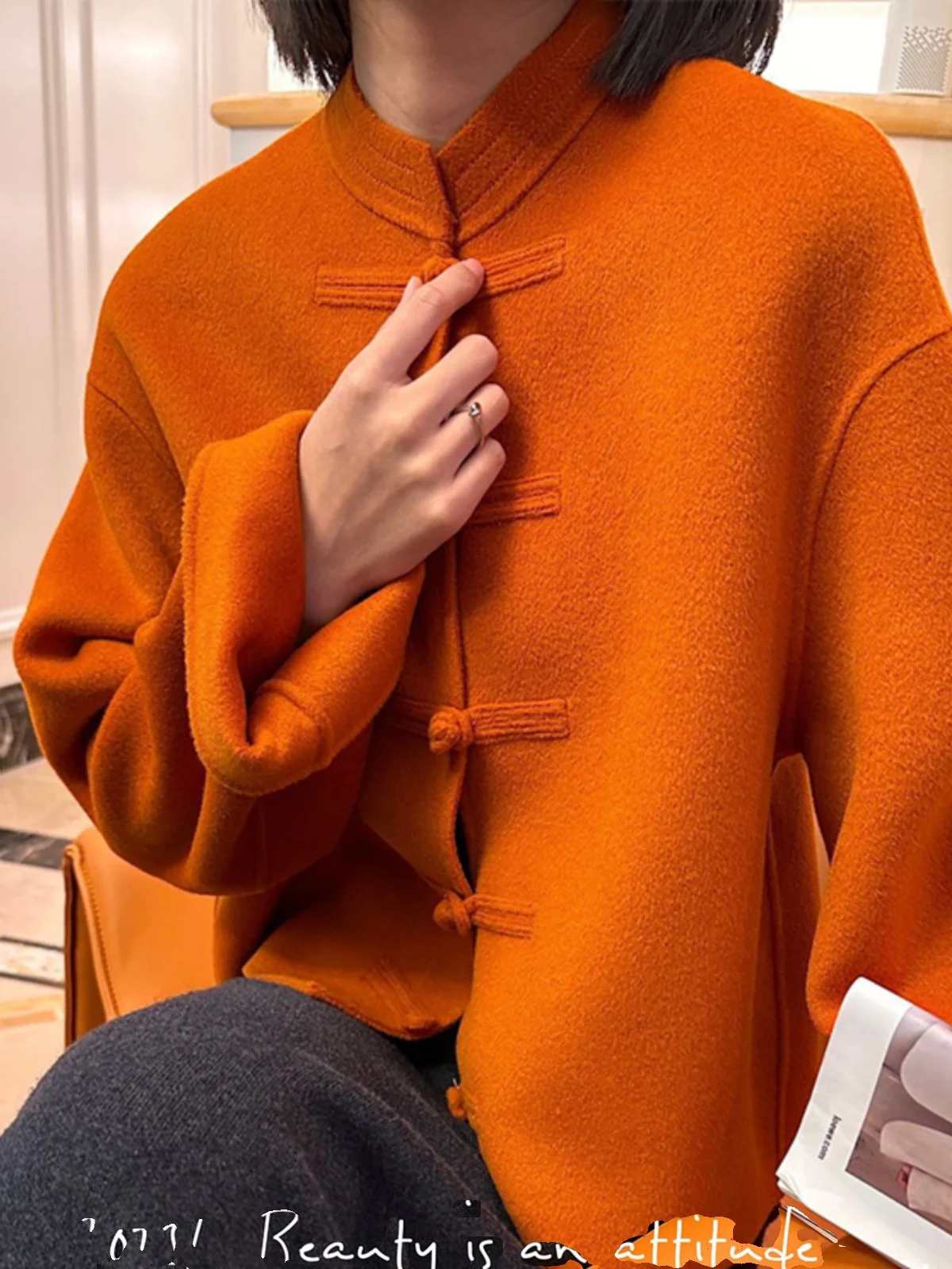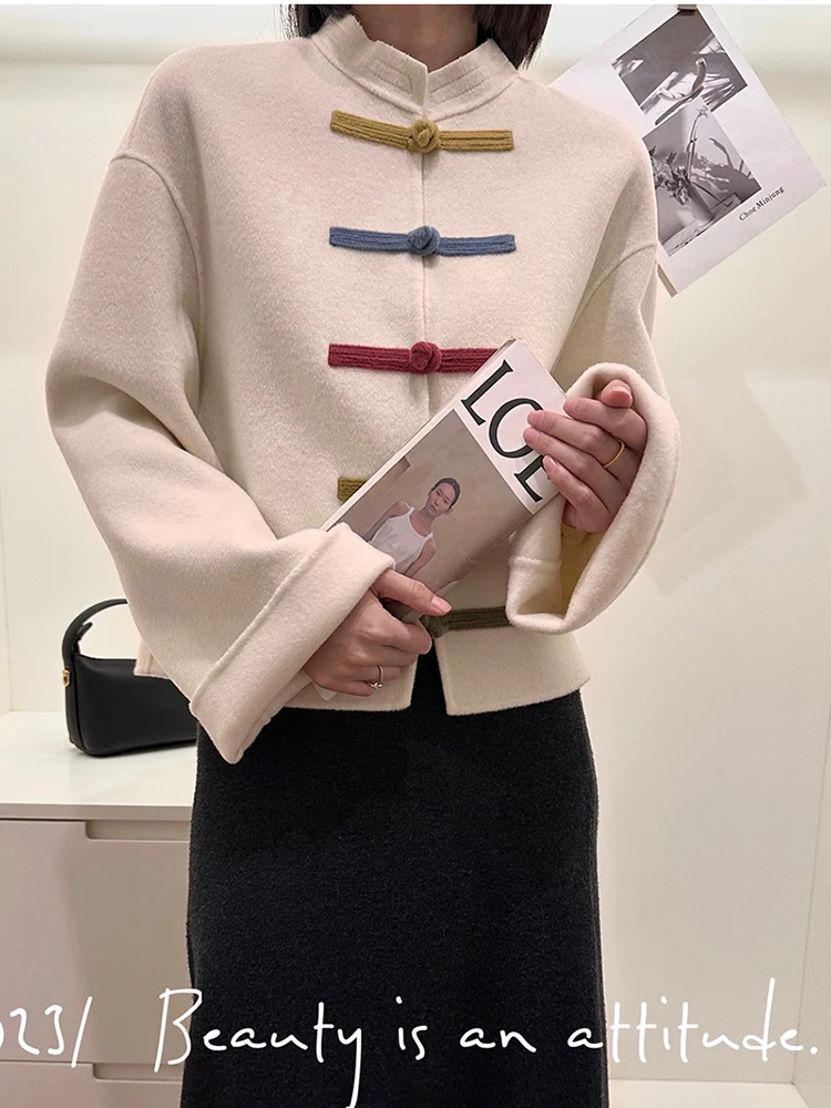 Retro Chinese Style Buckle Reversible Cashmere Coat Women's Short 2023 Winter New Design Sense Woolen Coat