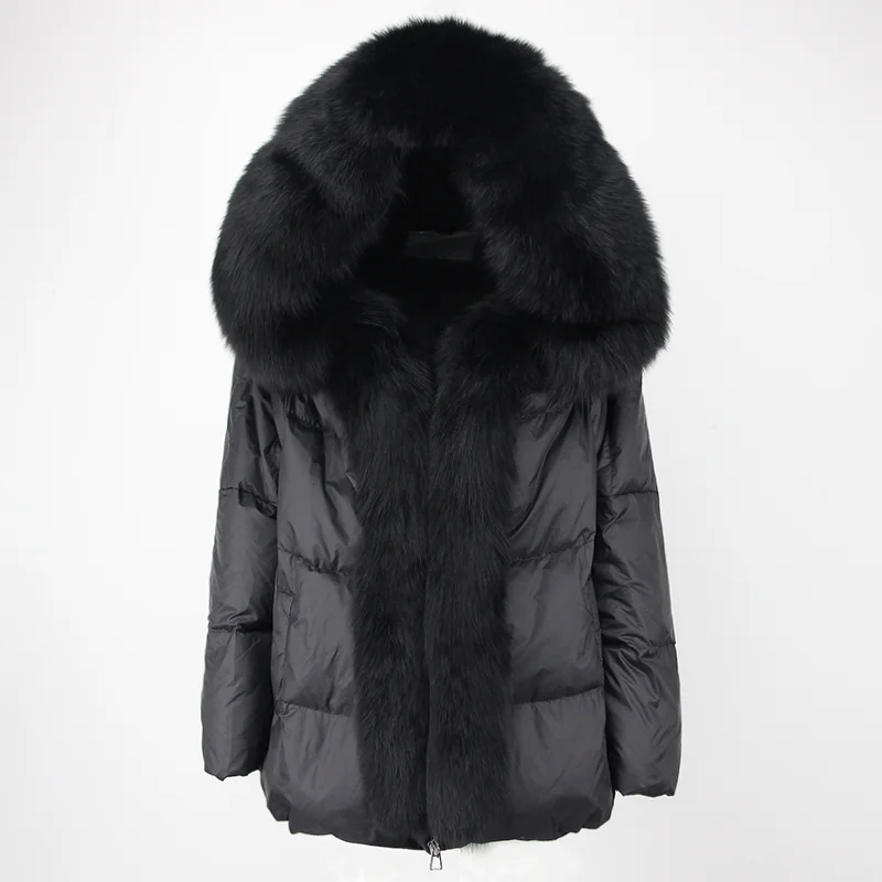 MENINA BONITA 2023 Real Fox Fur Coat Winter Women Natural Collar Thick Warm Hooded Duck Down Jacket Luxury Loose Outwear Female