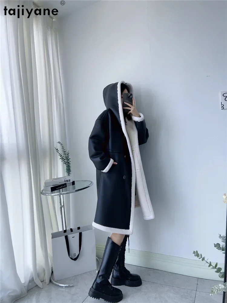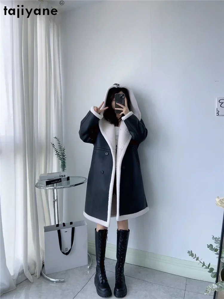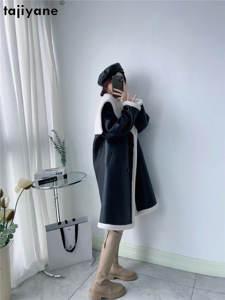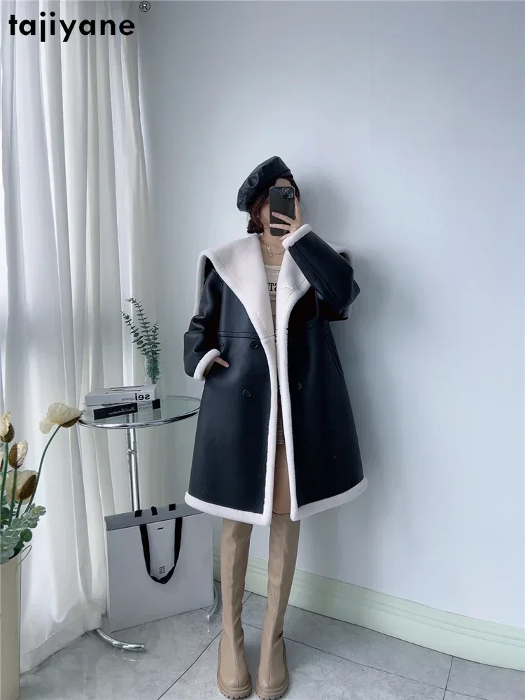Tajiyane 100% Pure Wool Coats for Women 2023 Winter Autumn Mid-length Ecological Leather Jacket Double Breasted Fur Coat Abrigos
