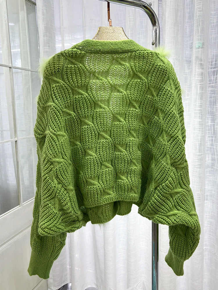 Cute Lovely christmas Real Fox Fur Knitted Sweater Coat Winter Women Loose Style Cropped Cardigan Jacket For Lady
