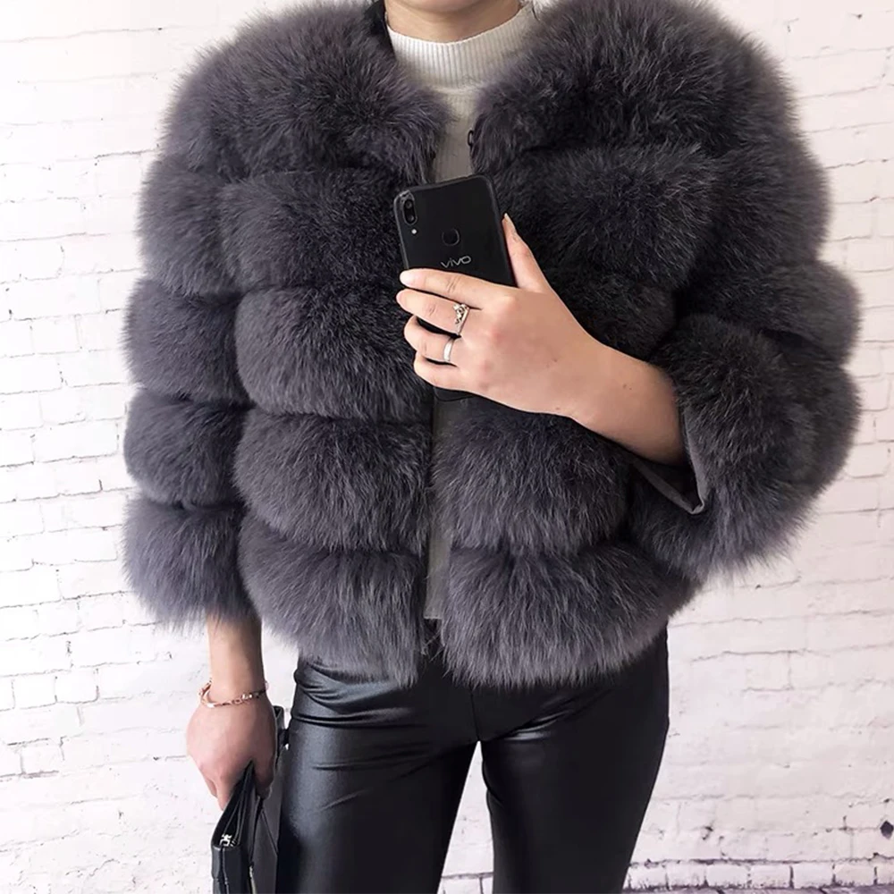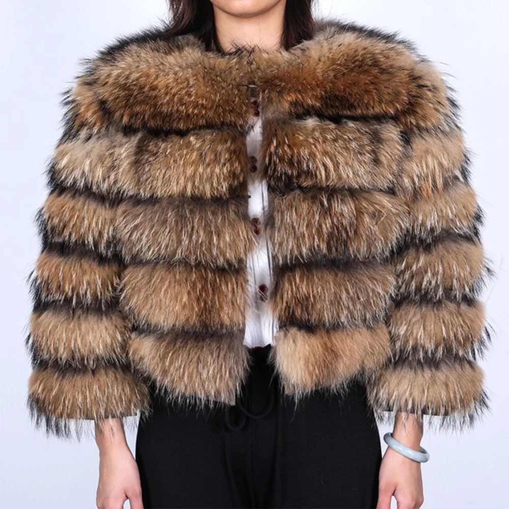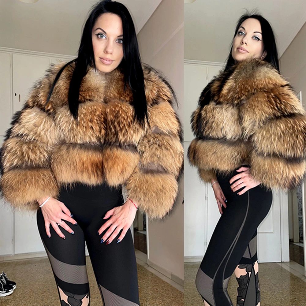 Furbility 2022 winter fur coats 100% natural fur jackets female winter warm raccoon fur coat high quality fox fur jacket