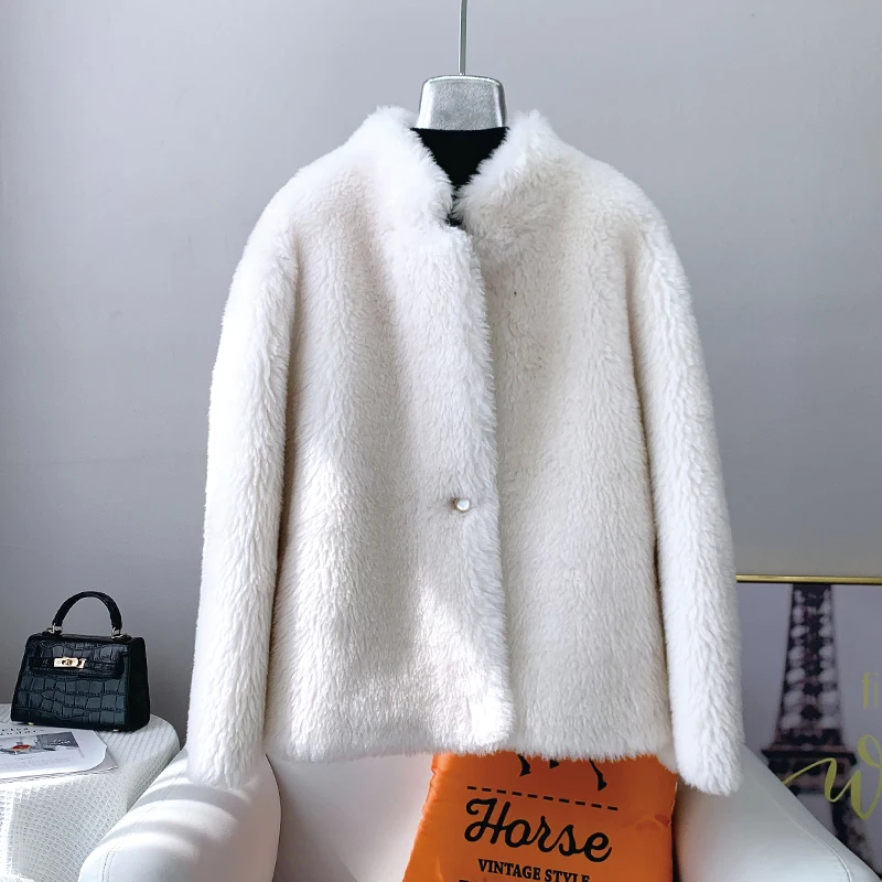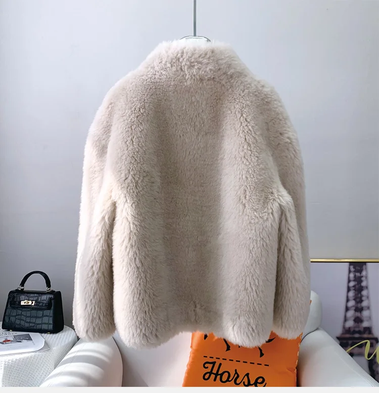 Women Girl Warm Sheep Shearling Coat Female Lamb Wool Fur Winter Parka Fashion Jacket Overcoat JT3199