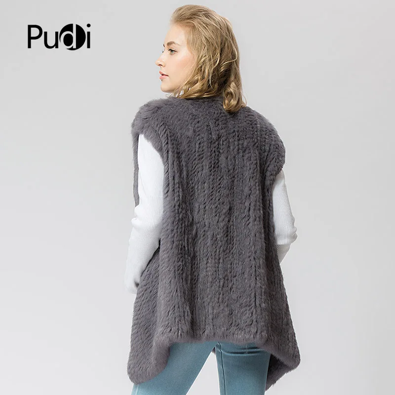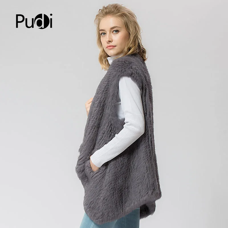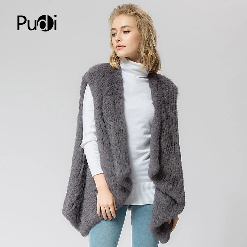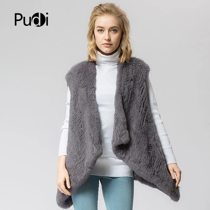 VR054 Knitted Knit New Fur Coat Women's Real Rabbit Fur Vest Overcoat Jacket Women's Winter Warm Genuine Fur Vest Plus Size