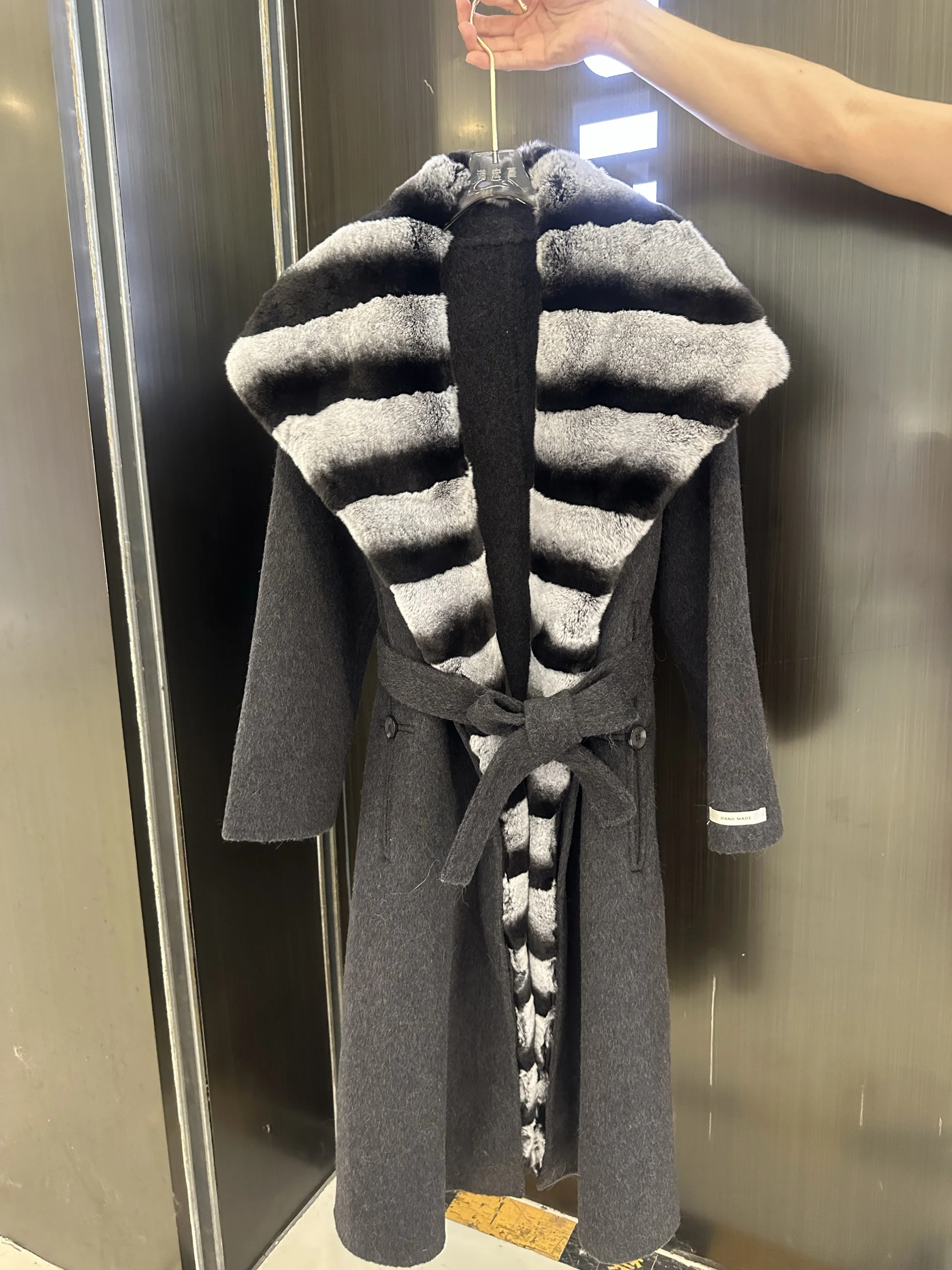 Winter Real Fur Coat Women Natural Rex Rabbit Fur Collar Jacket Long Cashmere Wool Woolen Ladies Luxury Thick Female Outerwear