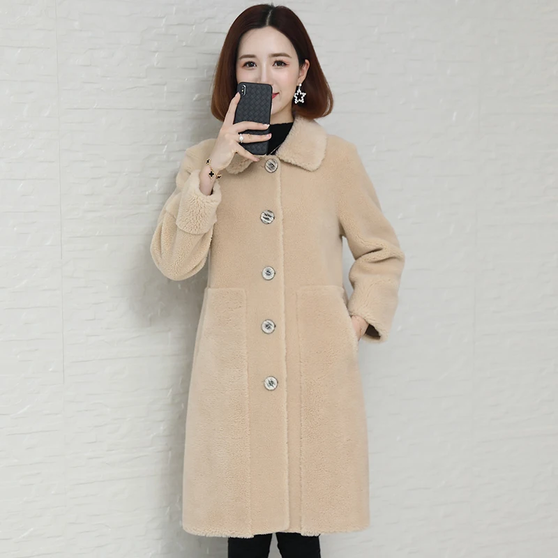 Real Winter Coat Fur Sheep Shearing Wool Jacket Korean Long Coats and Jackets Women Clothes 2023 HK00029-4 KJ4649