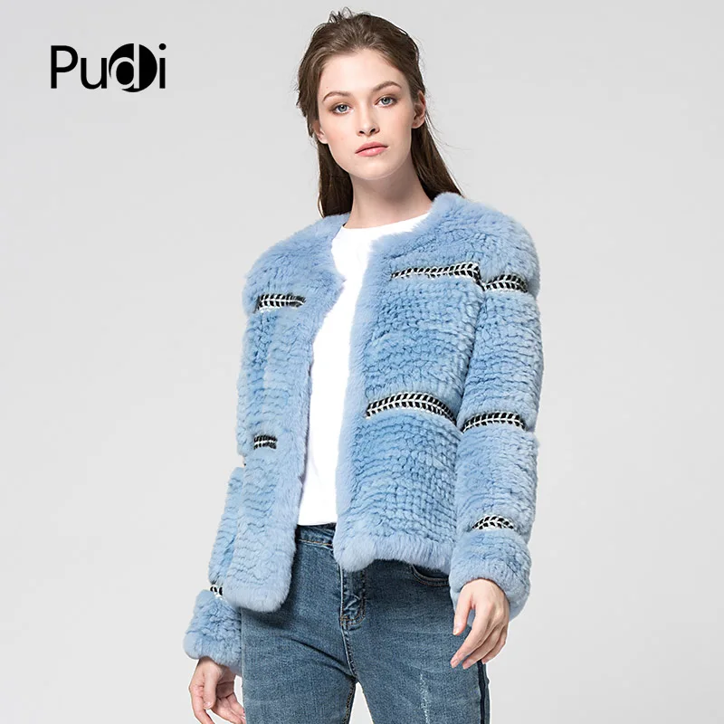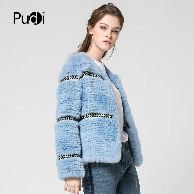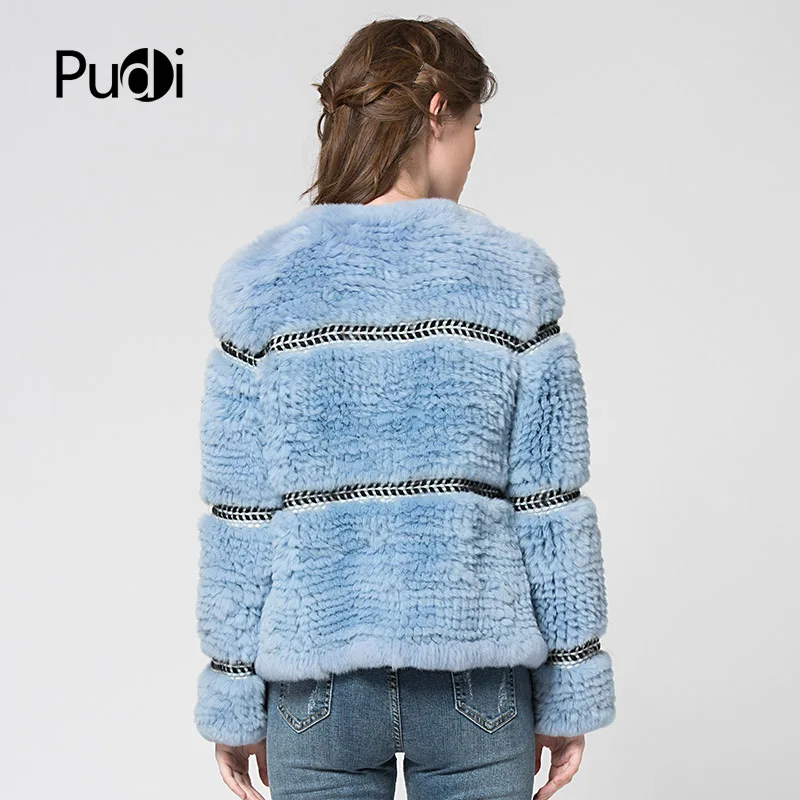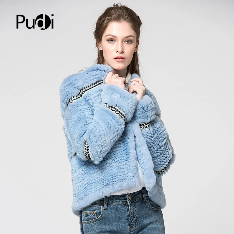 Pudi CT7027 Rex Rabbit Fur Coats Knitted Knit New Real Rabbit Fur Coat Overcoat Jacket Women's Winter Thick Warm Genuine Fur