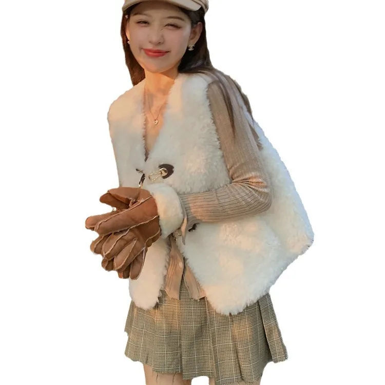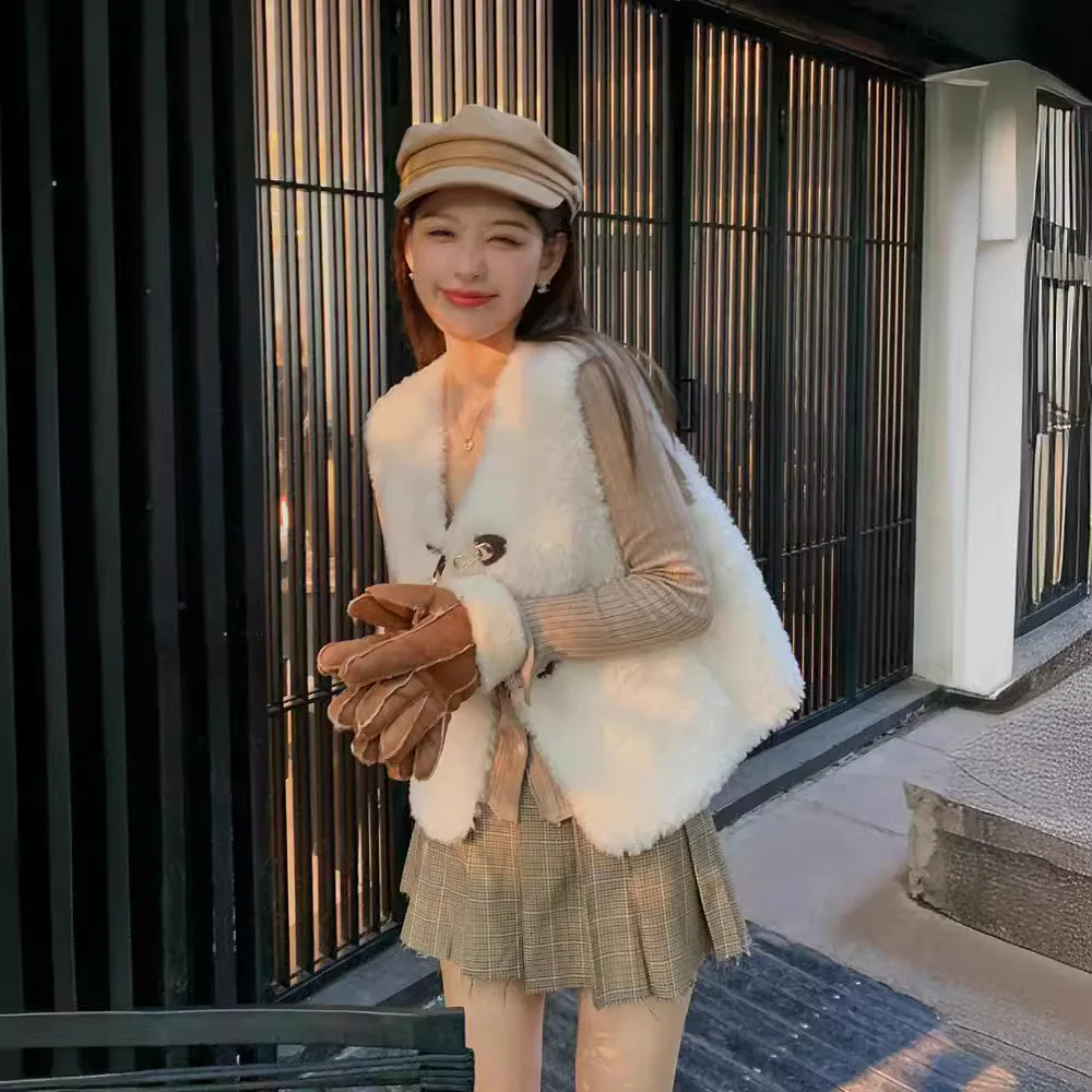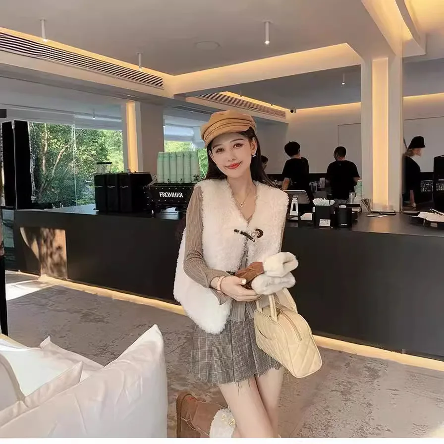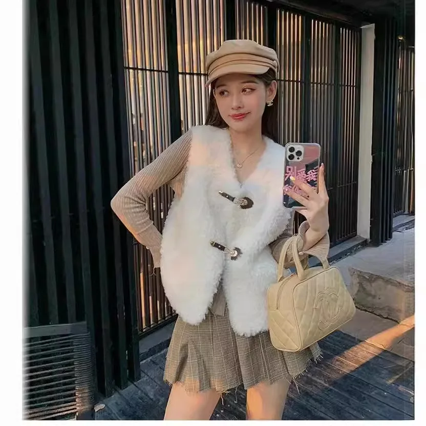 2024 Korean style all wool lamb wool, vest, leather and fur integrated sheep cut velvet, fur short jacket for women's autumn an