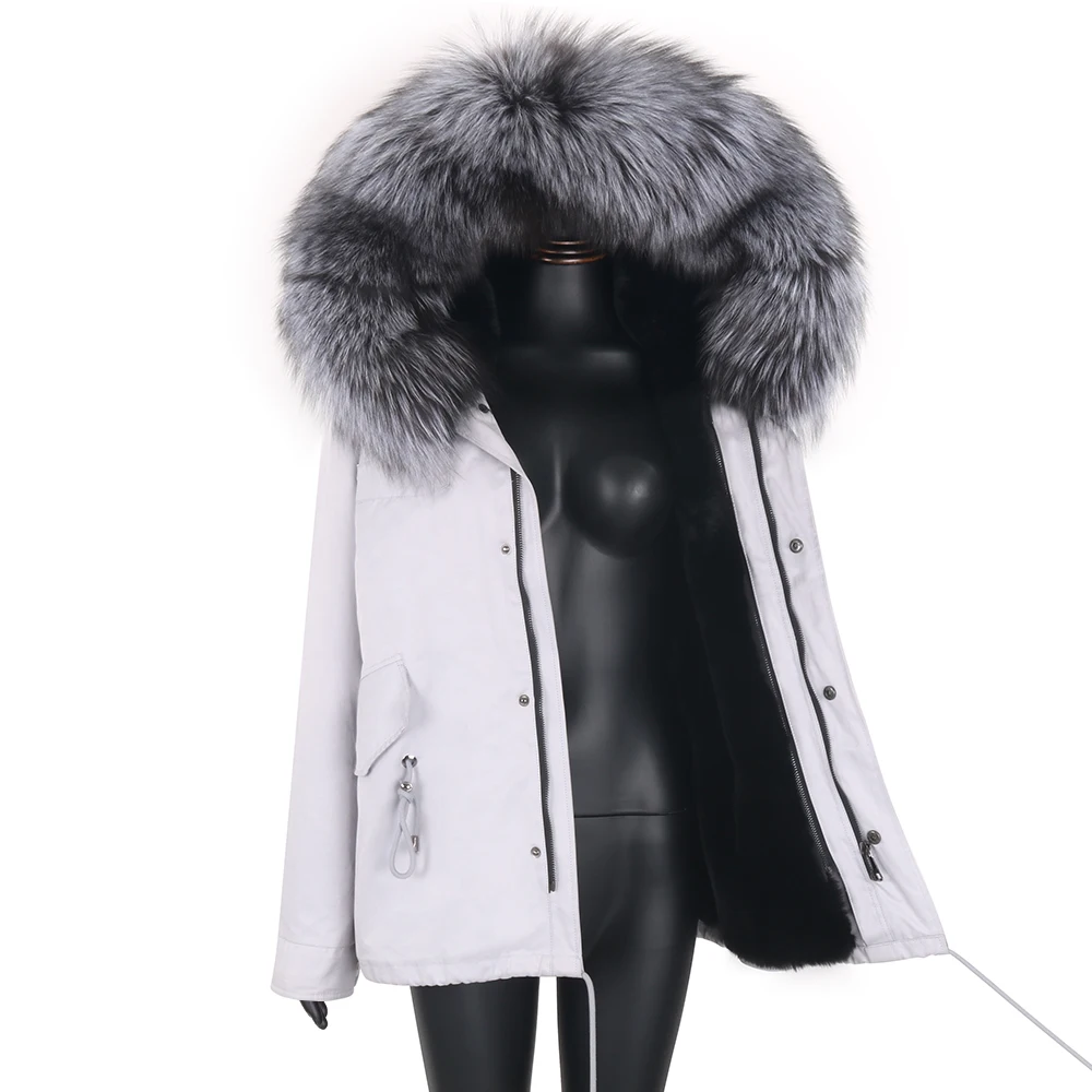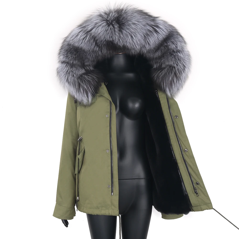 Women Winter Short Parka Army Green Coat Real Large Fox Fur Collar Thick Warm Fur Jacket Outerwear Fashion Streetwear