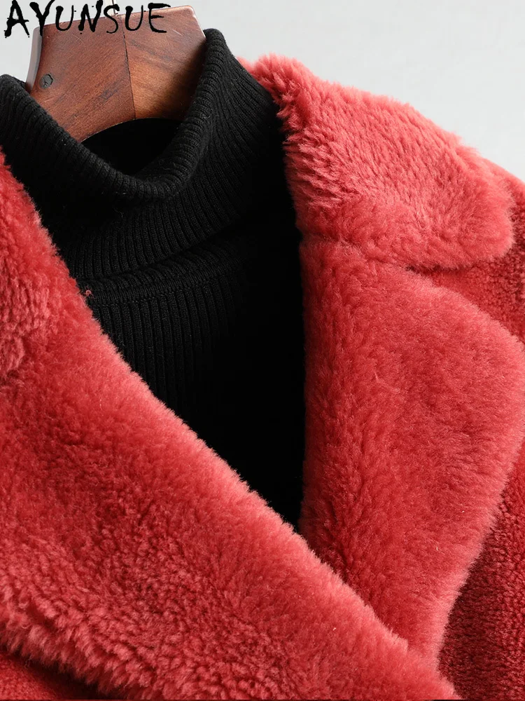 AYUNSUE Real Wool Jackets Women Winter 2021 Long Sheep Shearling Coat Female Fur Trench Coats Korean Style Manteau Femme Gxy320