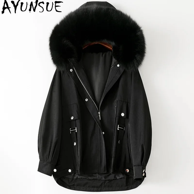 Women's AYUNSUE Fur Parkas New Autumn Winter Jackets for Women 2024 Rabbit Liner Coat Hooded Fox Collar Parker
