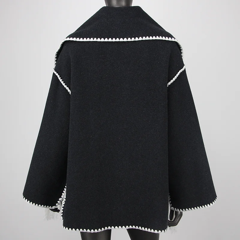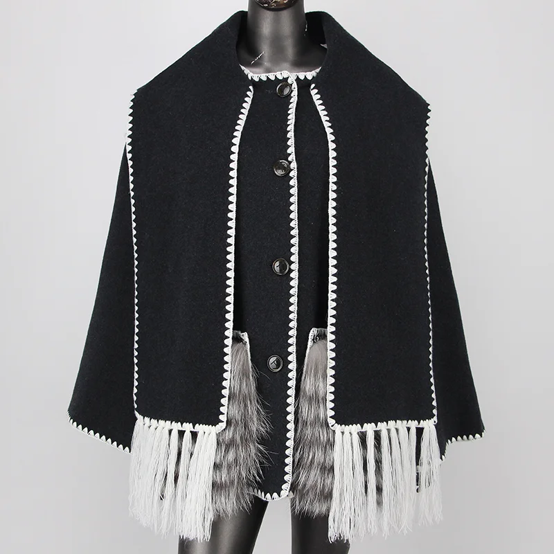 FURYOURSELF 2023 Real Silver Fox Fur Pocket Winter Women Jacket Wool Blends Cashmere Coat Knitted Tassel Scarf Collar Outerwear