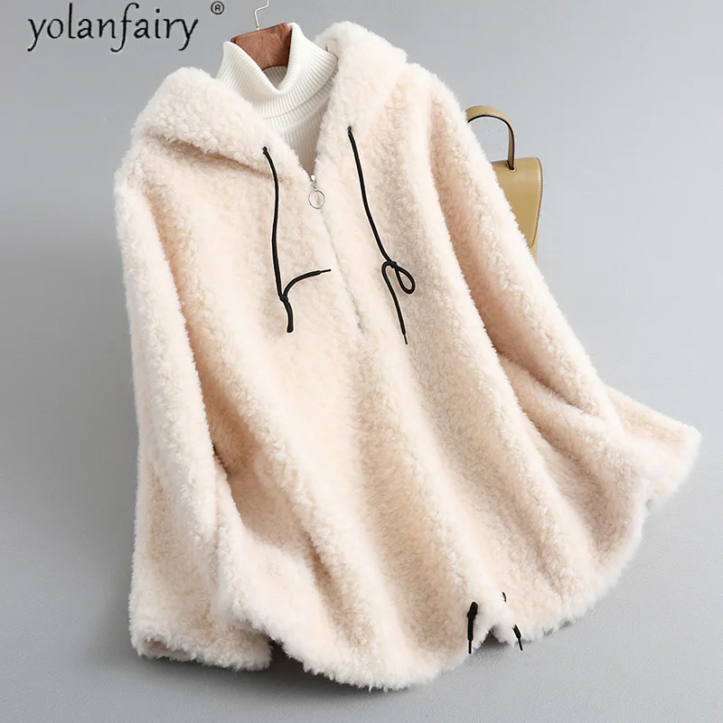 Real 2023 New Fur Coat Female Jacket Winter Clothes Women Korean Clothes 100% Wool Jackets for Women Coats KJ