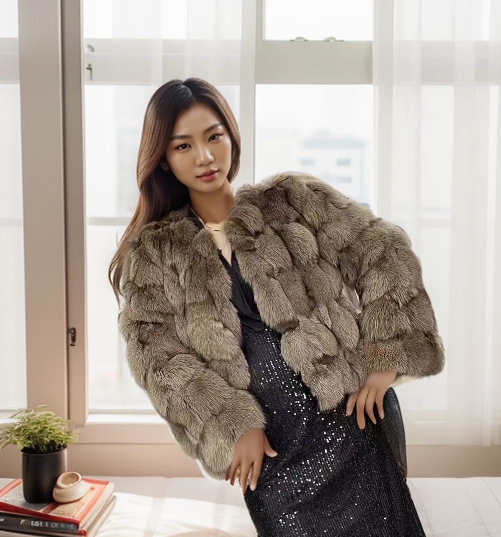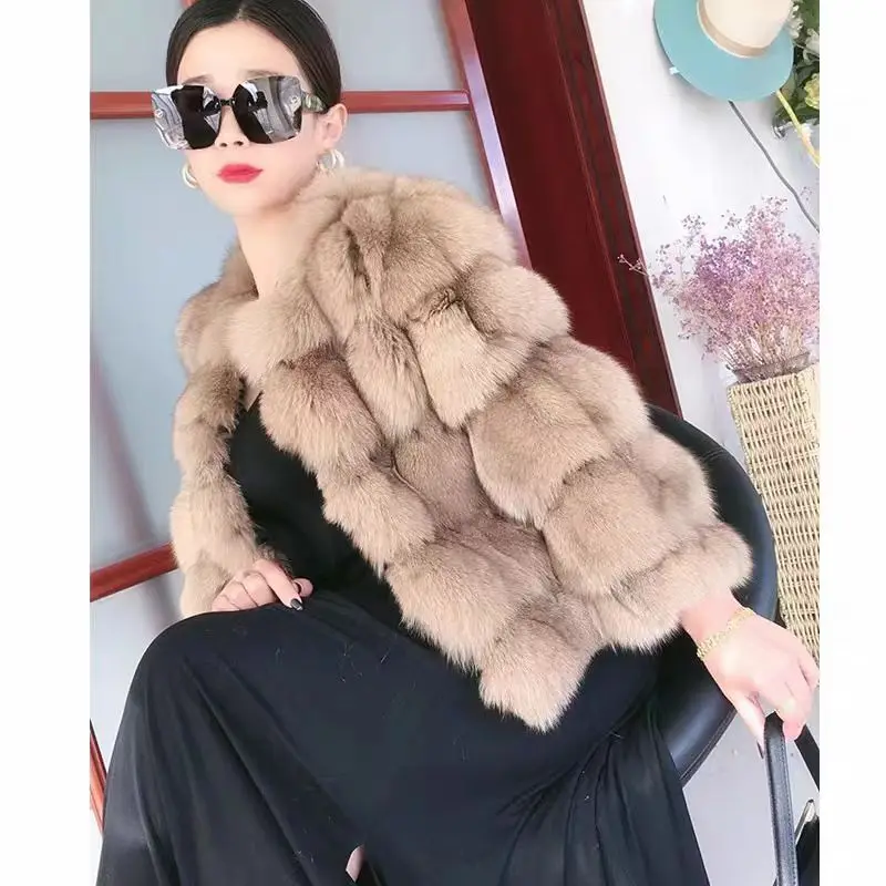 Autumn and winter classic fur fox head fur women's fox fur splicing fur all-in-one warm and fashionable genuine fur coat