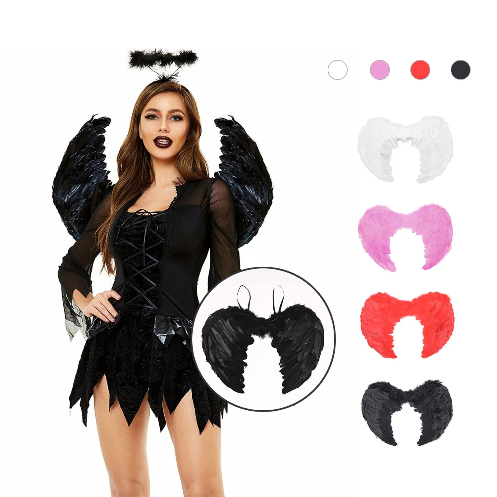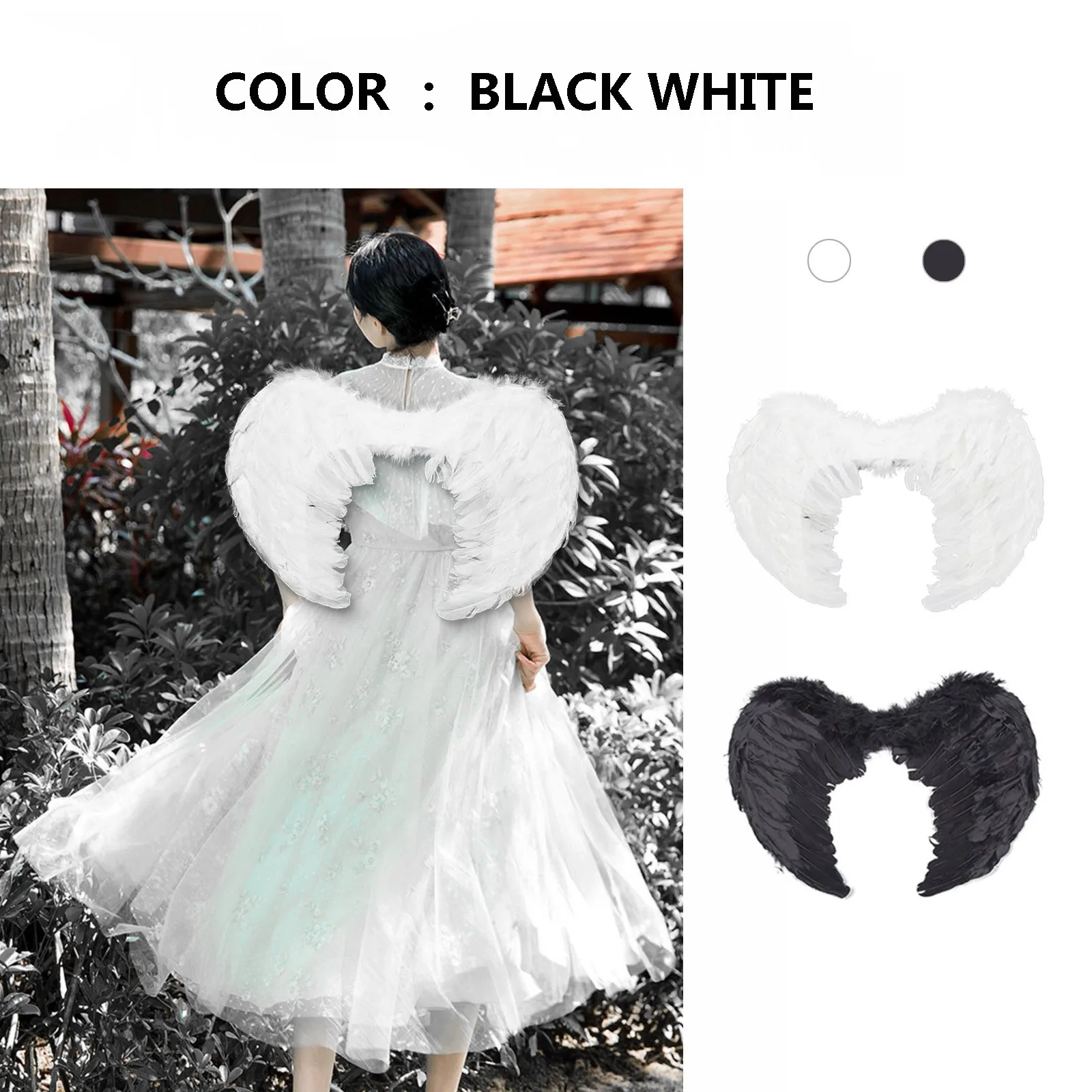 Name | Fashion White Black Feather Angel Wings For Dance Party Carnival Cosplay Costume Stage Show Masquerade Christmas Holiday Dress |