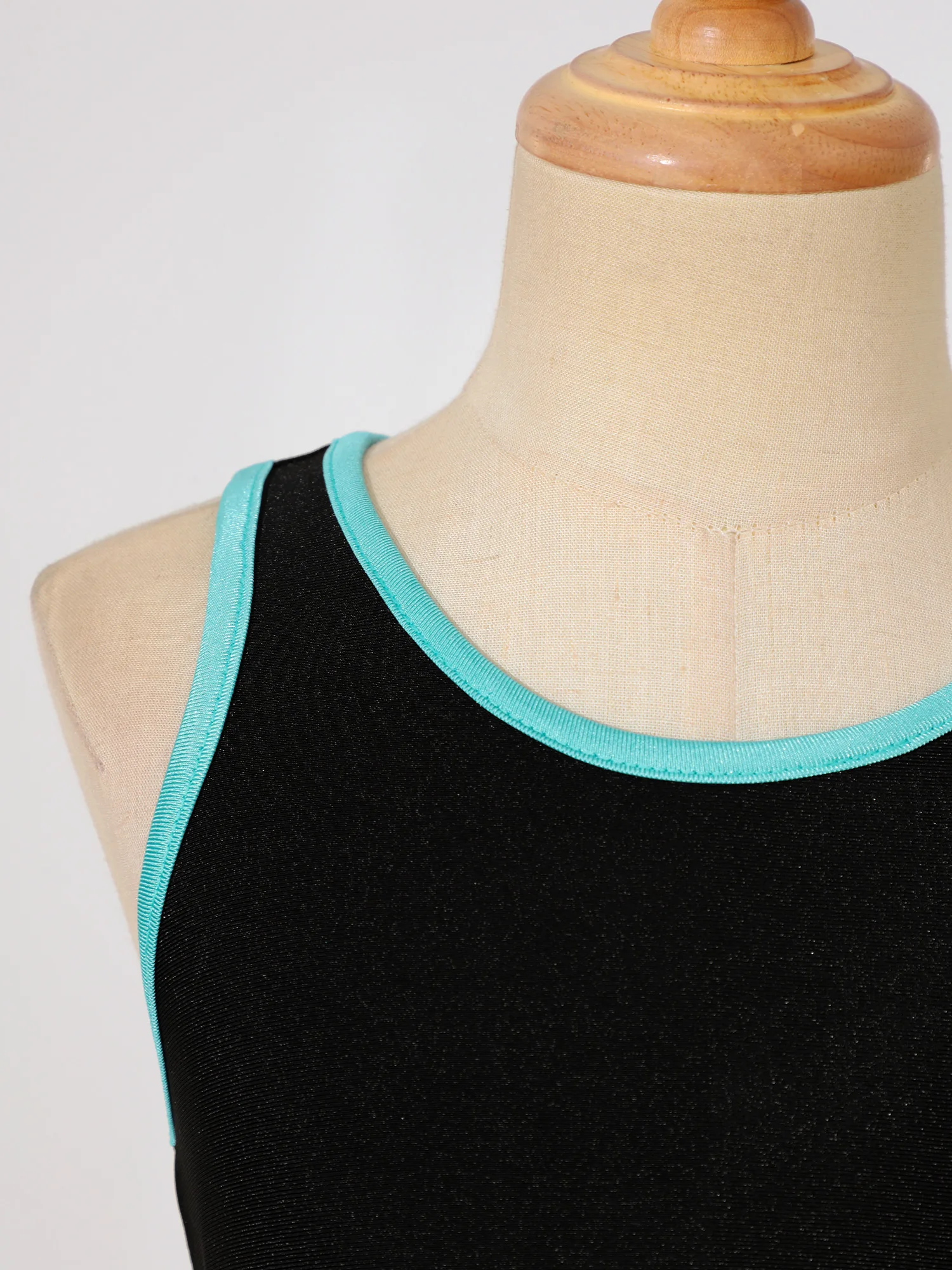 Kids Girls Ballet Dance Crop Tops Racer Back Sleeveless Tank Tops Contrast Trim Stretch Sport Gymnastics Swimming Fitness Tops