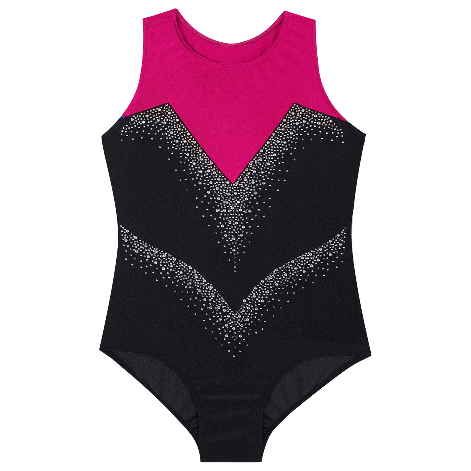 Teen Girls Figure Skating Leotard Costume Rhythmic Gymnastics Rhinestone Sleeveless Bodysuit Acrobatics Ballet Dancewear