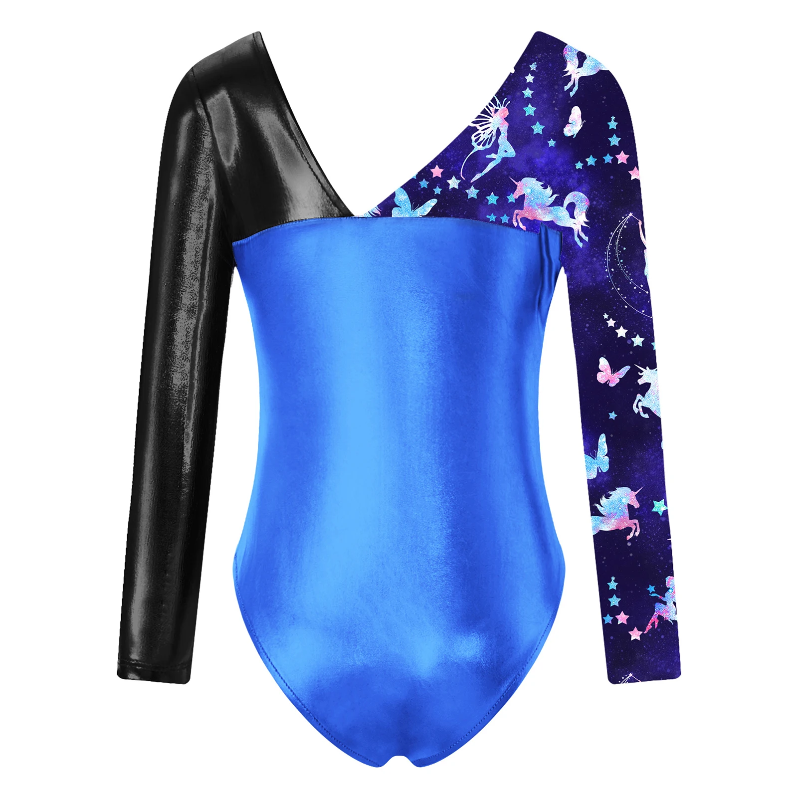 Girls Ballet Dance Leotard Long Sleeve Print Metallic High Cut Bodysuit Dancewear Gymnastic Yoga Training Performance Costume