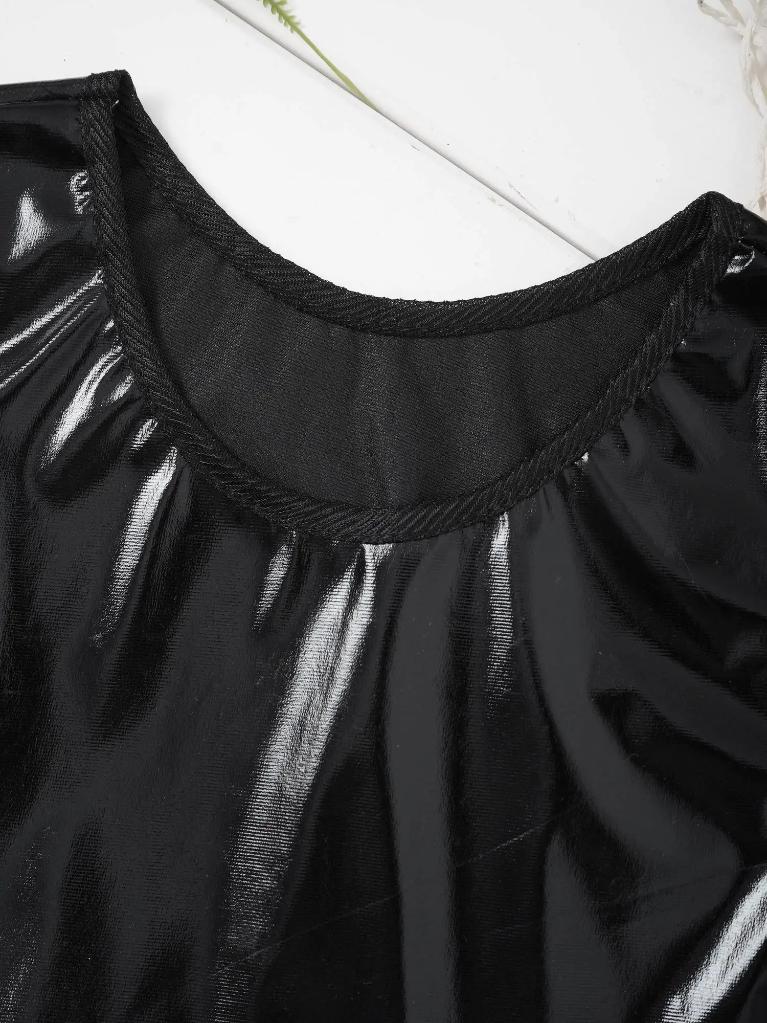 Kids Boys Girls Shiny Bronzing Cloth Crop Top Jazz Dance Costume Stage Performance Clothes Sleeveless Round Neck Vest Dancewear
