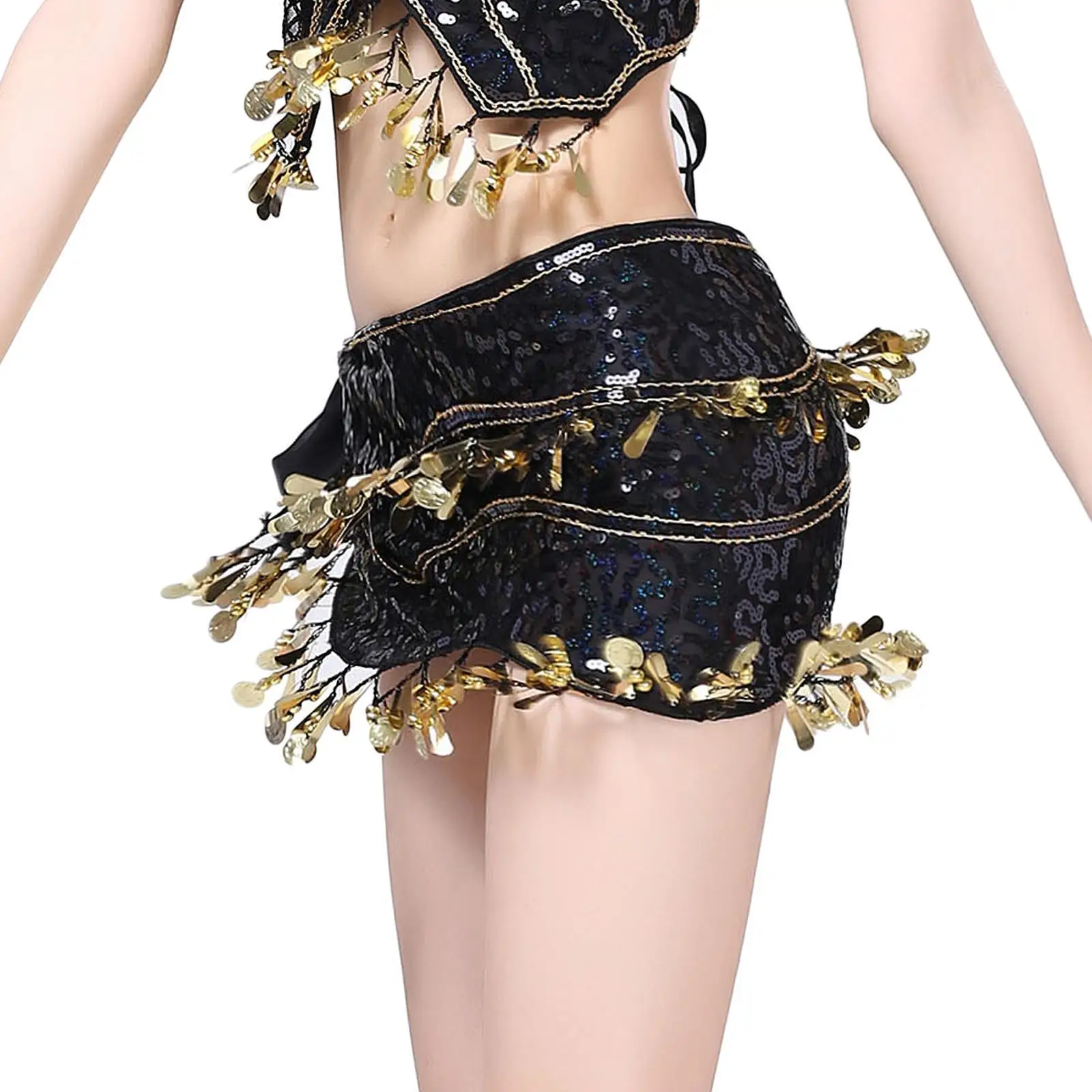 Name | 2/3 Belly Dance Hip Scarf Sequin Dance Belt Tassel Coins Skirt Belt Black |