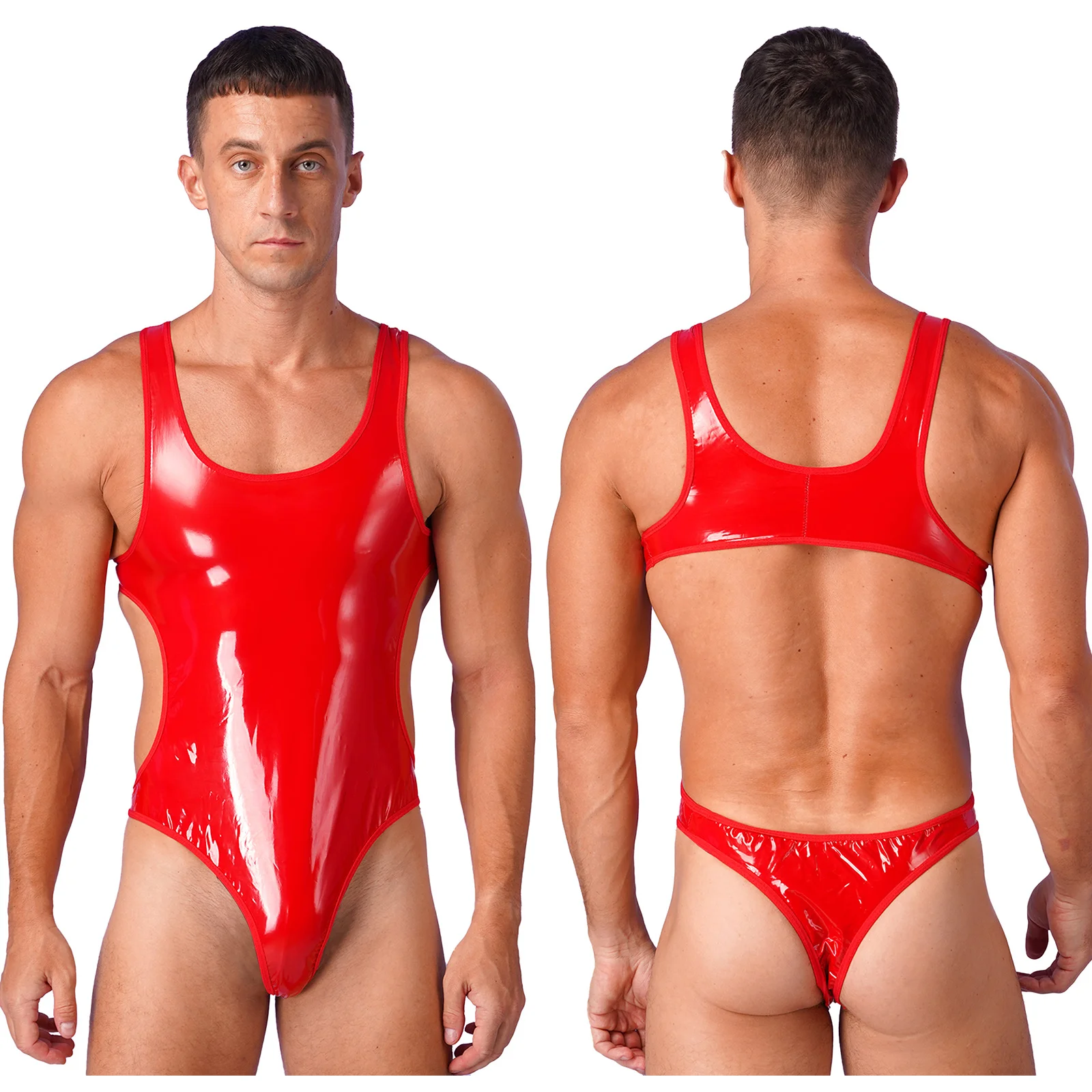 Name | Mens Rave Party Nightclub Pole Dancing Leotard Sleeveless Backless Wet Look Patent Leather Bodysuit for Music Festival Nightwear |