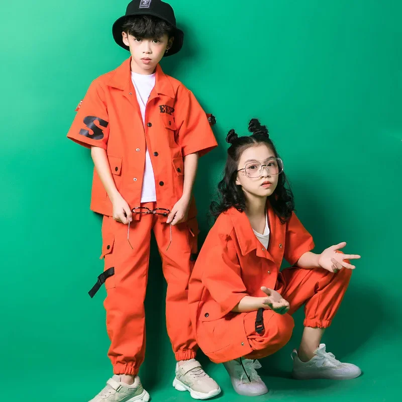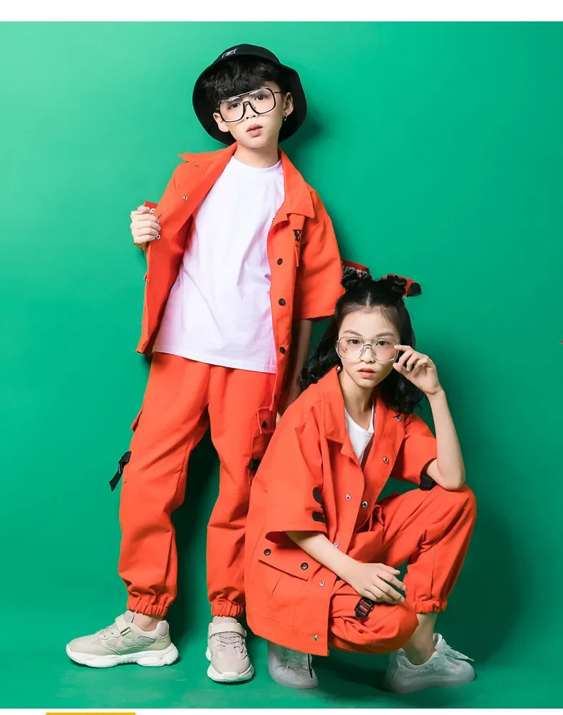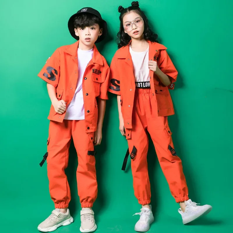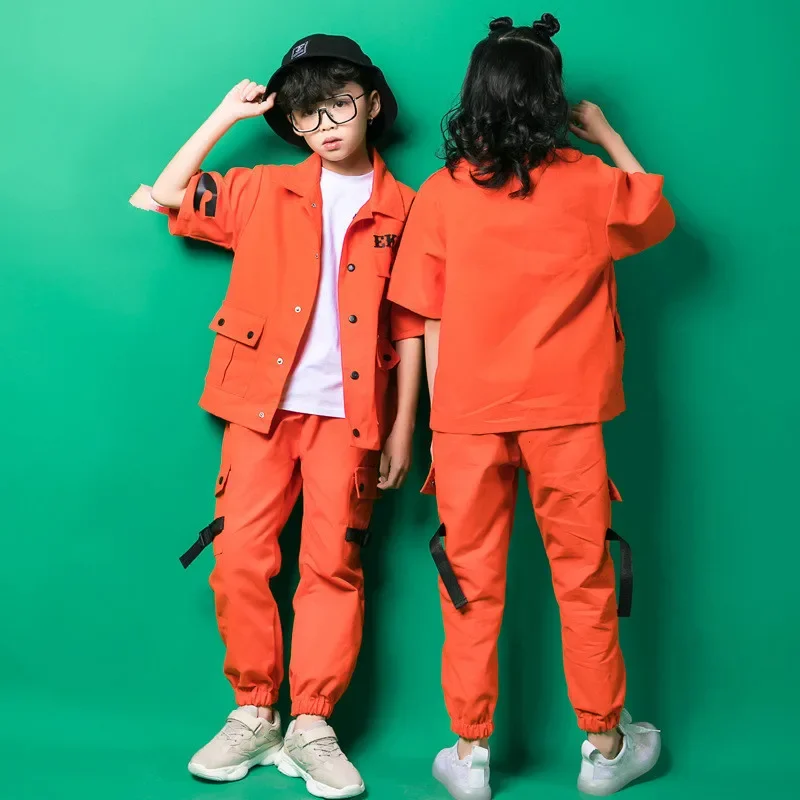 Name | Orange Jacket Top Loose Casual Pants Girls Boys Hiphop Street Ballroom Dancing Clothes Wear Kids Jazz Hip Hop Dance Costumes |