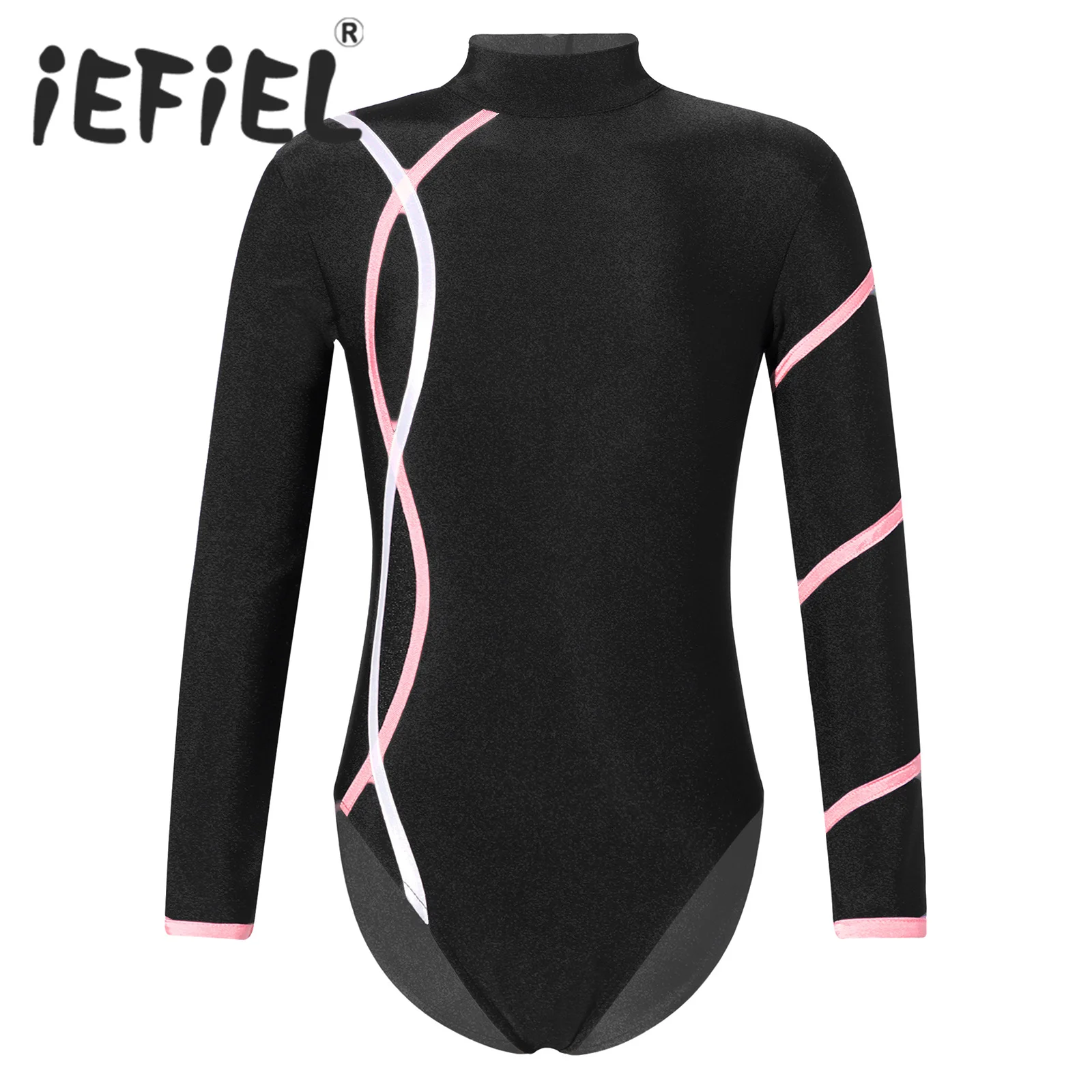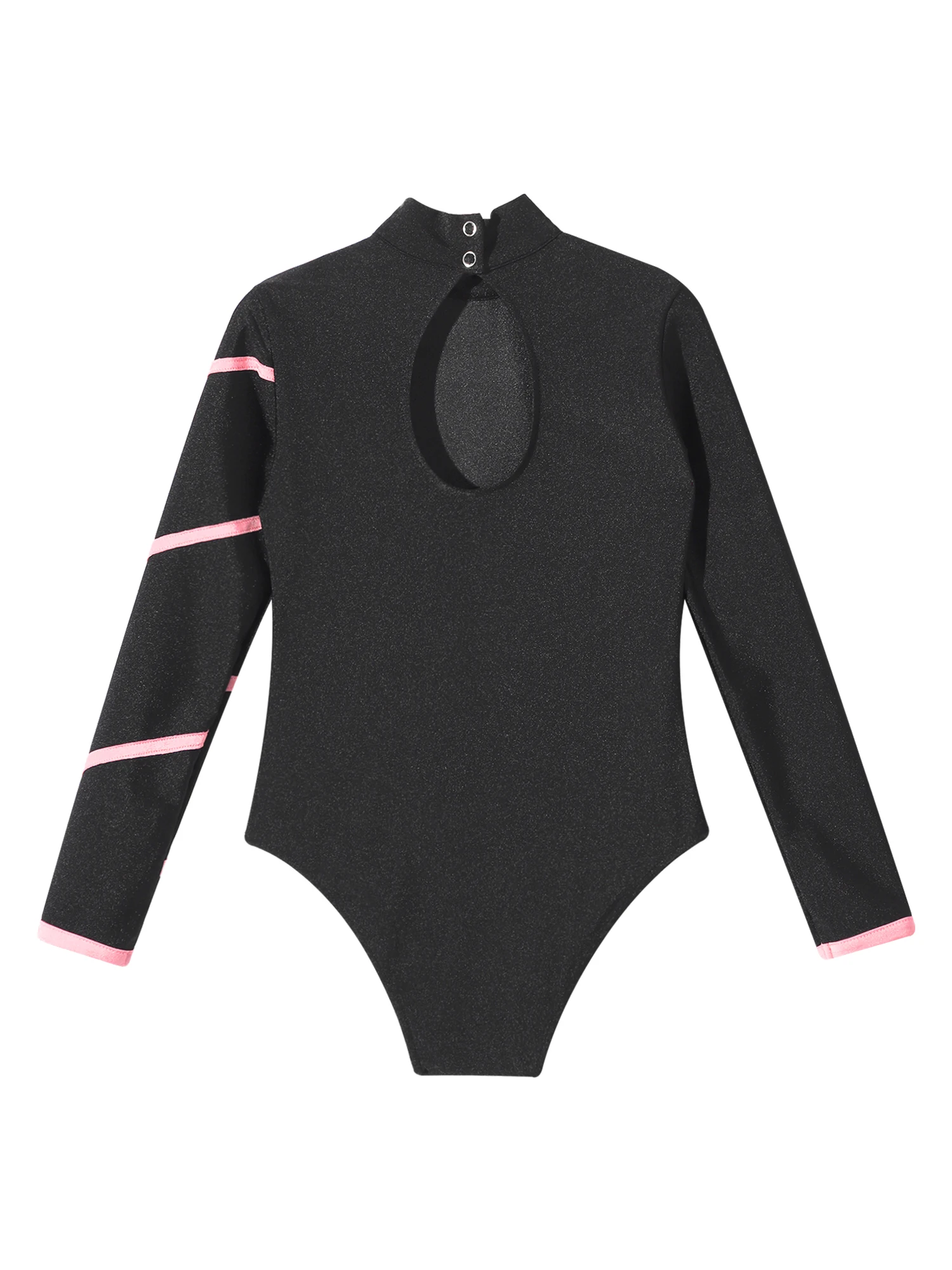 Kids Girls Ballet Dance Leotard Sports Gymnastics Bodysuit Unitard Mock Neck Long Sleeve Keyhole Back Open Back Dance Jumpsuit
