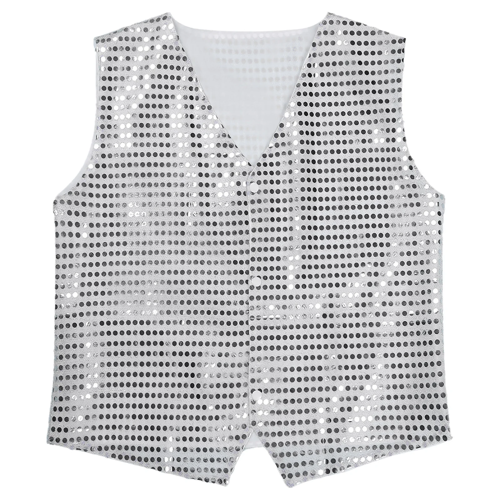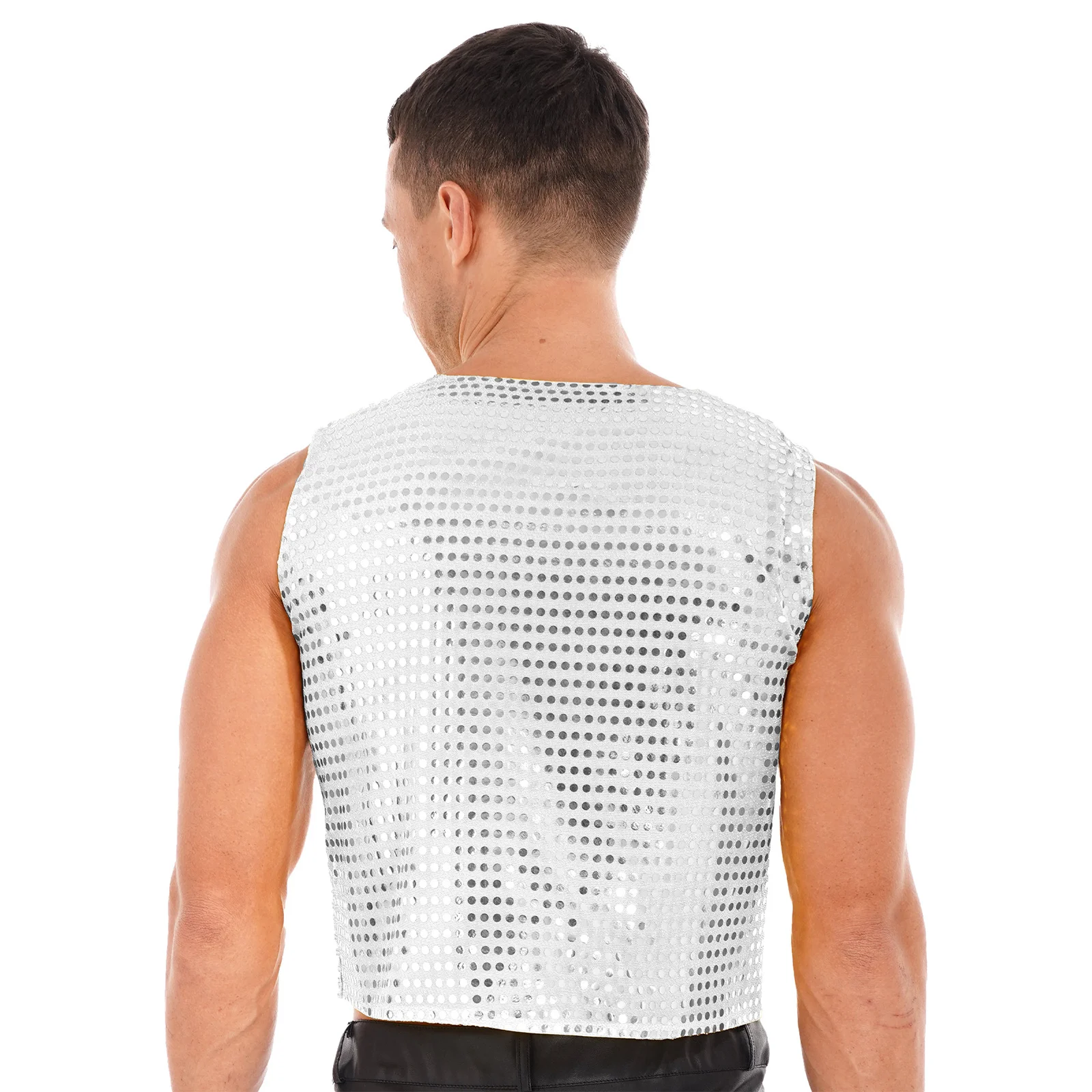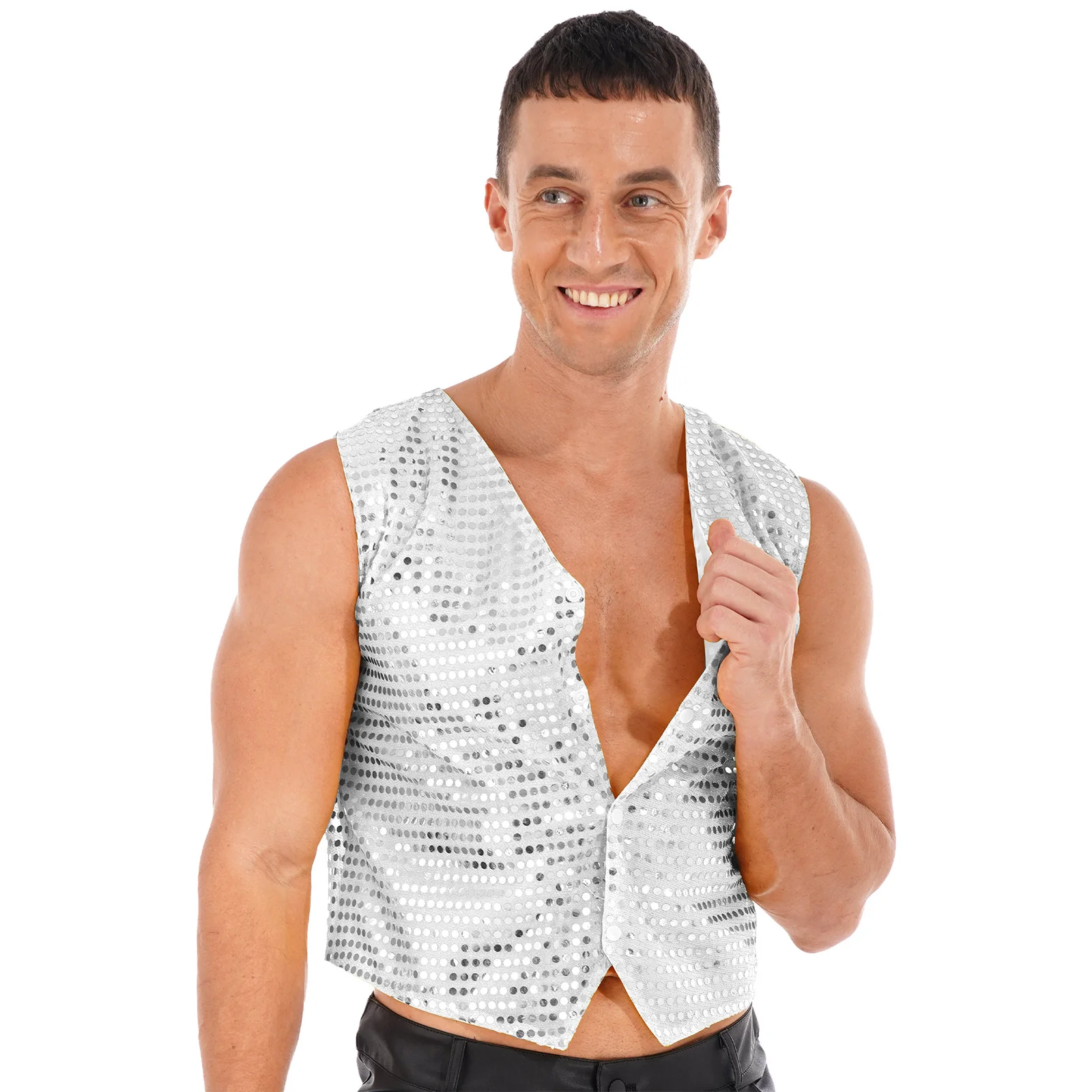 Mens Sequin Vest Dance Costumes Shiny Sleeveless V-Neck Jacket Waistcoat Rave Party Club Stage Performance Clothing Dancewear