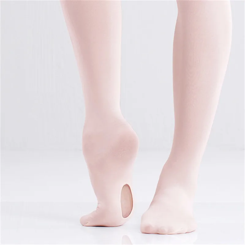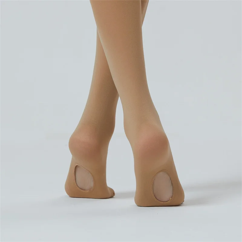 Hot Sale High Quality Kids Girls Children Nylon Spandex Pink Suntan Ballet Dance Convertible Tights with hole