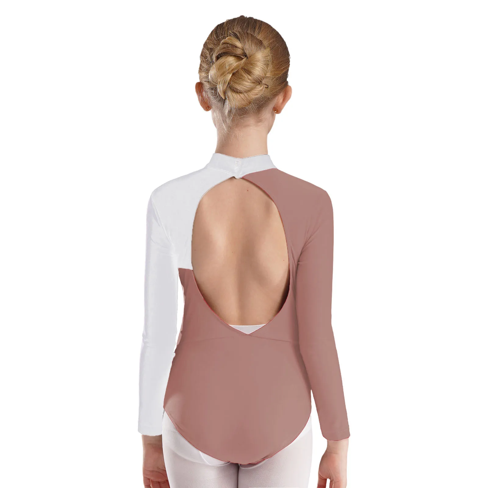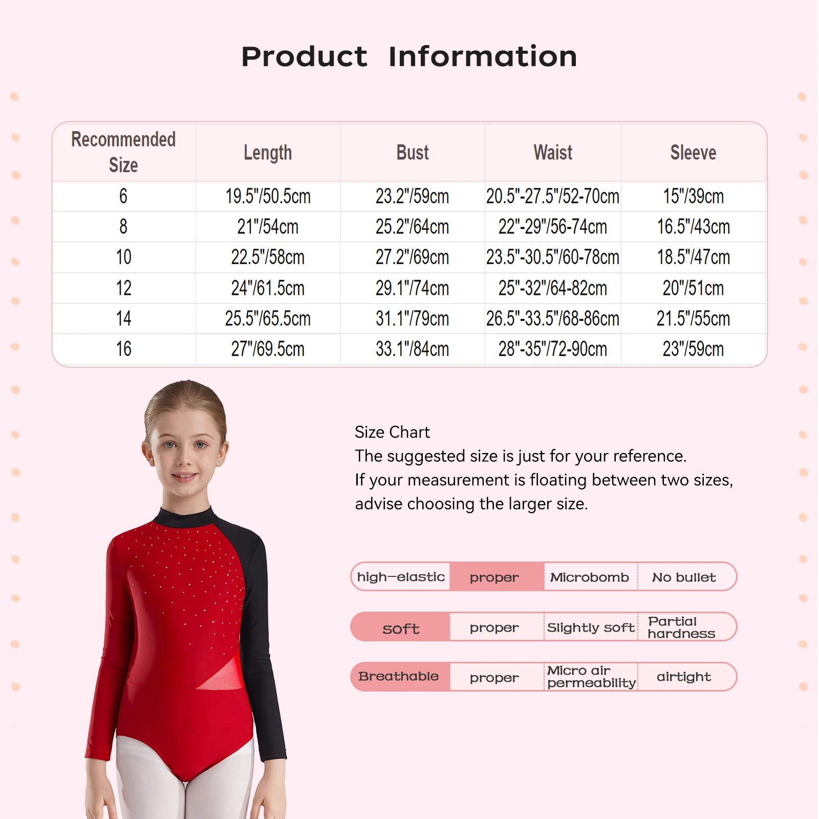 Kids Girl Ballet Dance Leotard Sports Gymnastics Workout Bodysuit Long Sleeve Rhinestone Ballerina Training Performance Costume