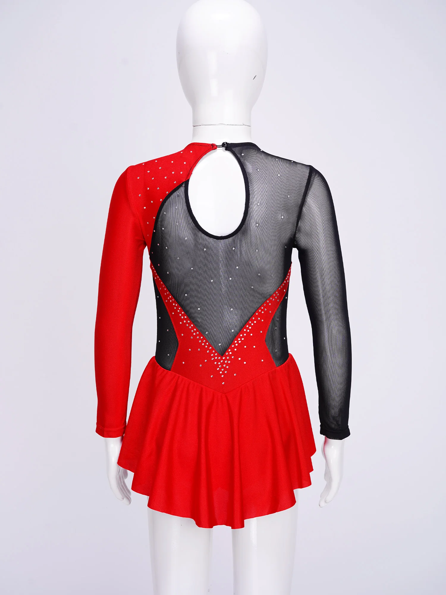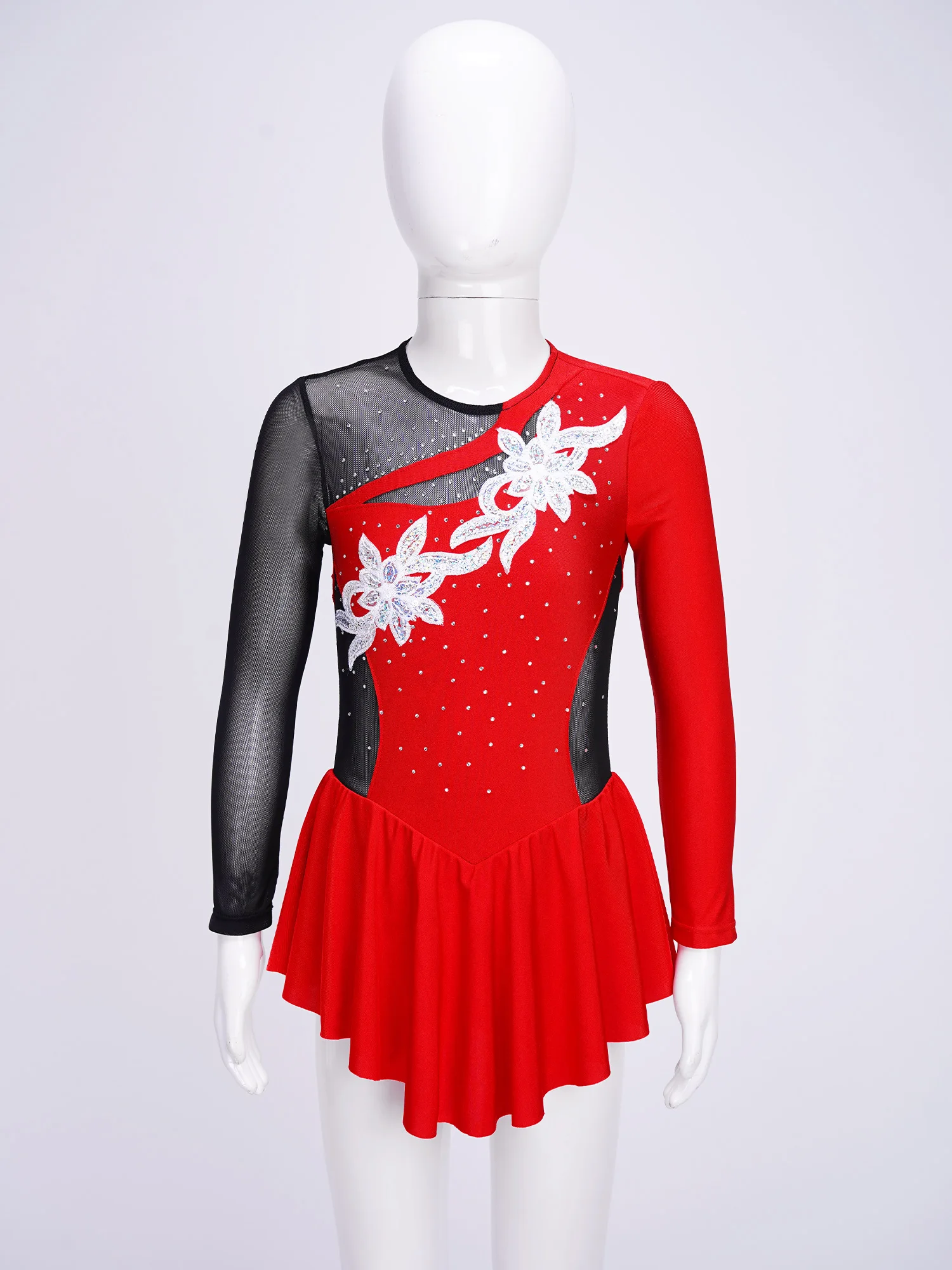 Name | Girls Ballet Leotard Dress Kids Rhinestone Long Sleeves Gymnastics Figure Skating Dress Stage Performance Competition Dancewear |