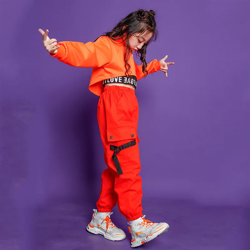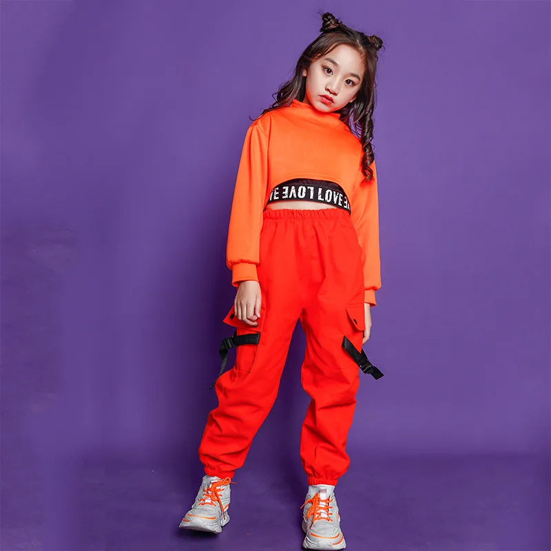Kids Girls Hip Hop Performance Outfits High Neck Sweatshirt Crop Top Running Casual Pants Jazz Dance Costume Clothes Street Wear