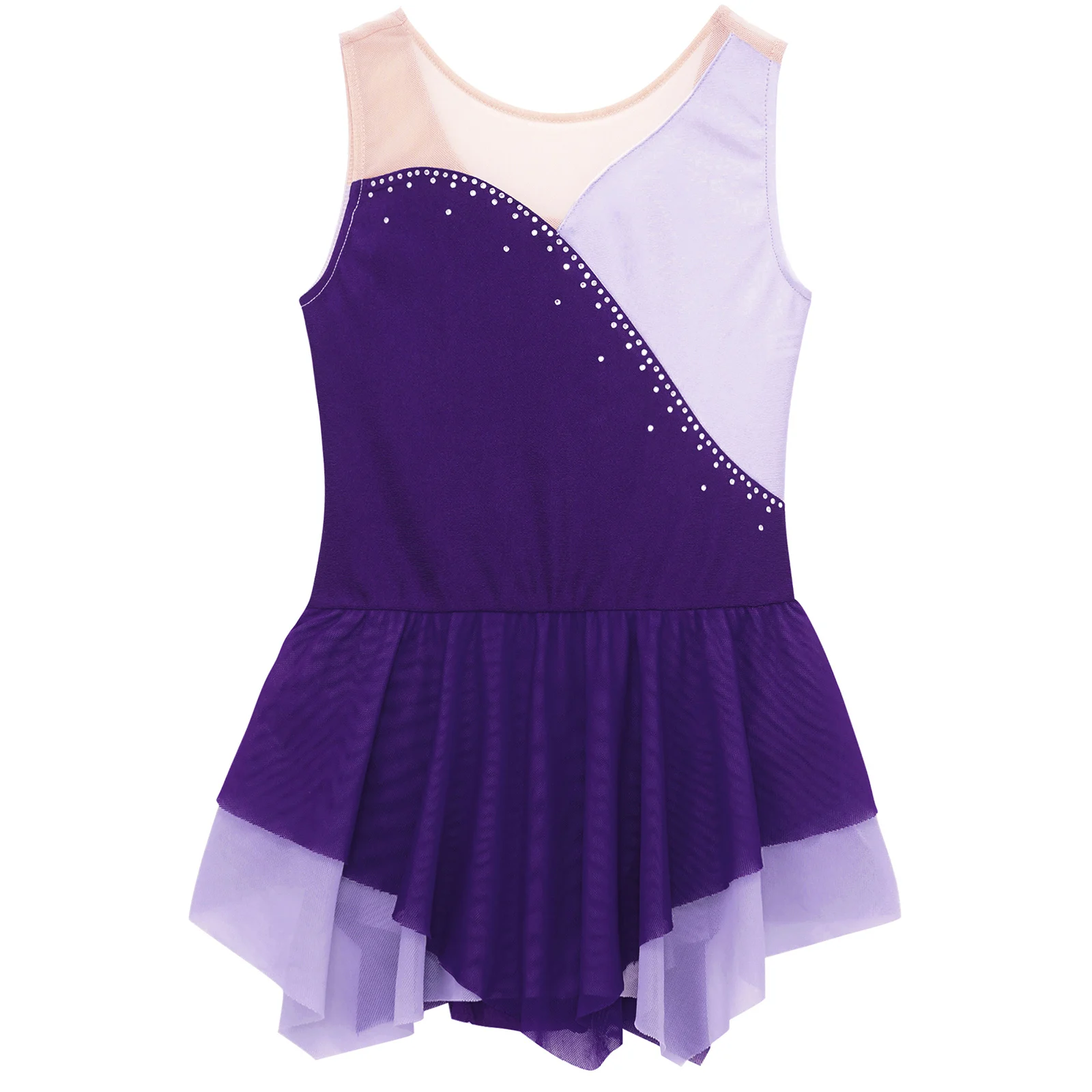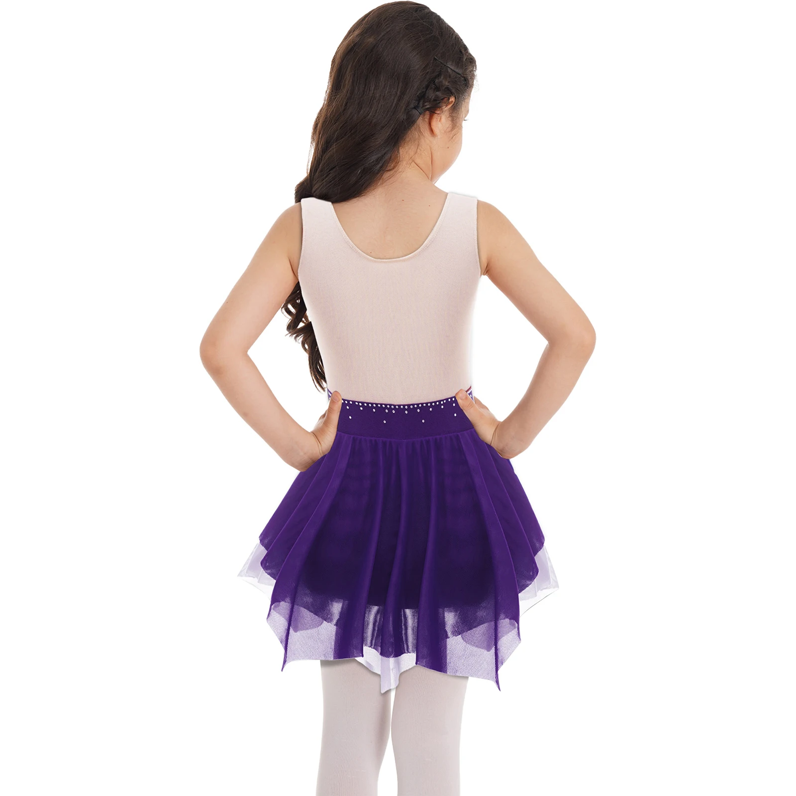 Name | Children Girls Figure Ice Skating Dance Dress Sleeveless Shiny Rhinestone Sheer Mesh Ballet Gymnastics Leotard Tutu Dancewear |