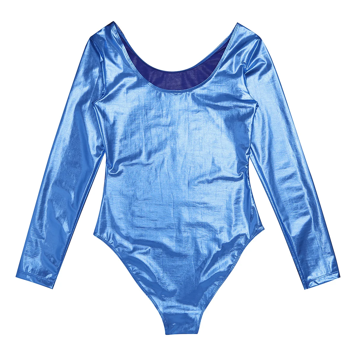 Lady Ballet Leotard Figure Skating Costume Long Sleeve Shiny Patent Leather Gymnastics Exercise Bodysuit Dance Class Dancewear