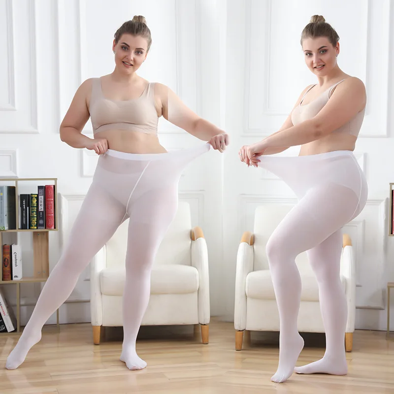 40-150KG Extra Large 200d Women Latin Dance Pantyhose Spring And Autumn White Velvet Leggings