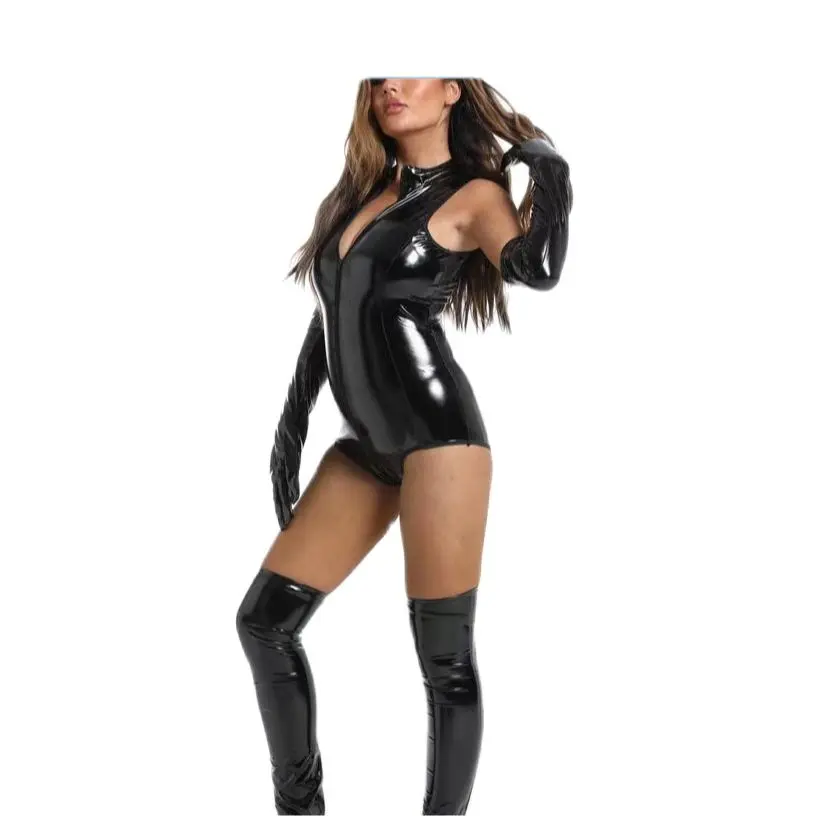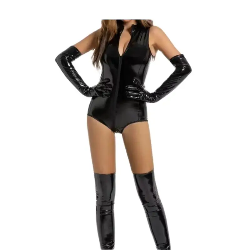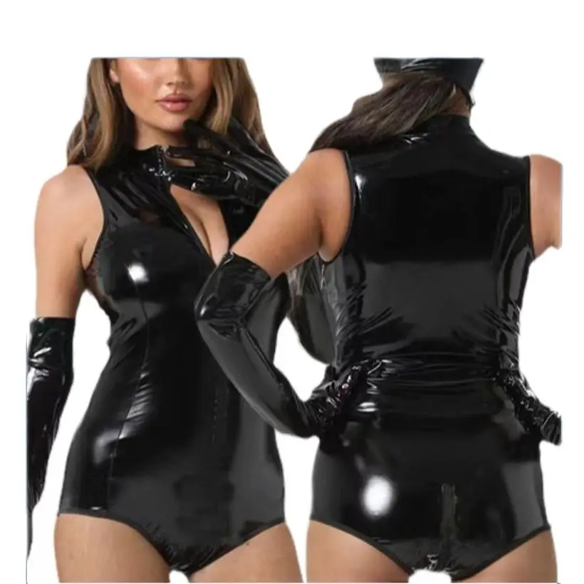 Name | Wet Look PVC Catsuit Short Sleeve Zipper Open Crotch Bodysuit Pole Dance Clubwear Hot Sexy PU Leather Sukumizu Body Shirts Tops |