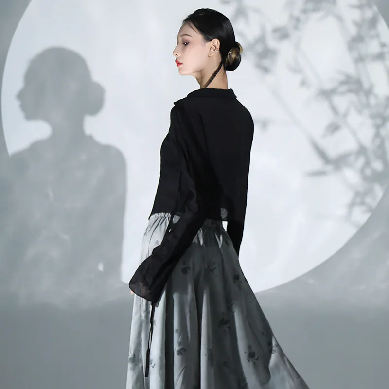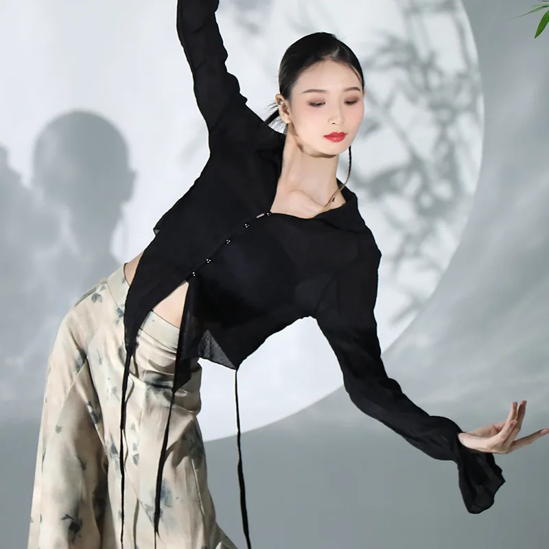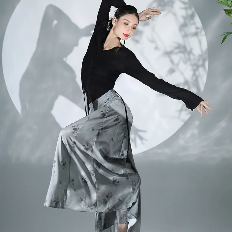 Chinese style beautiful classical dance attire women's flowing long sleeved black top loose skirt pants ethnic style popular