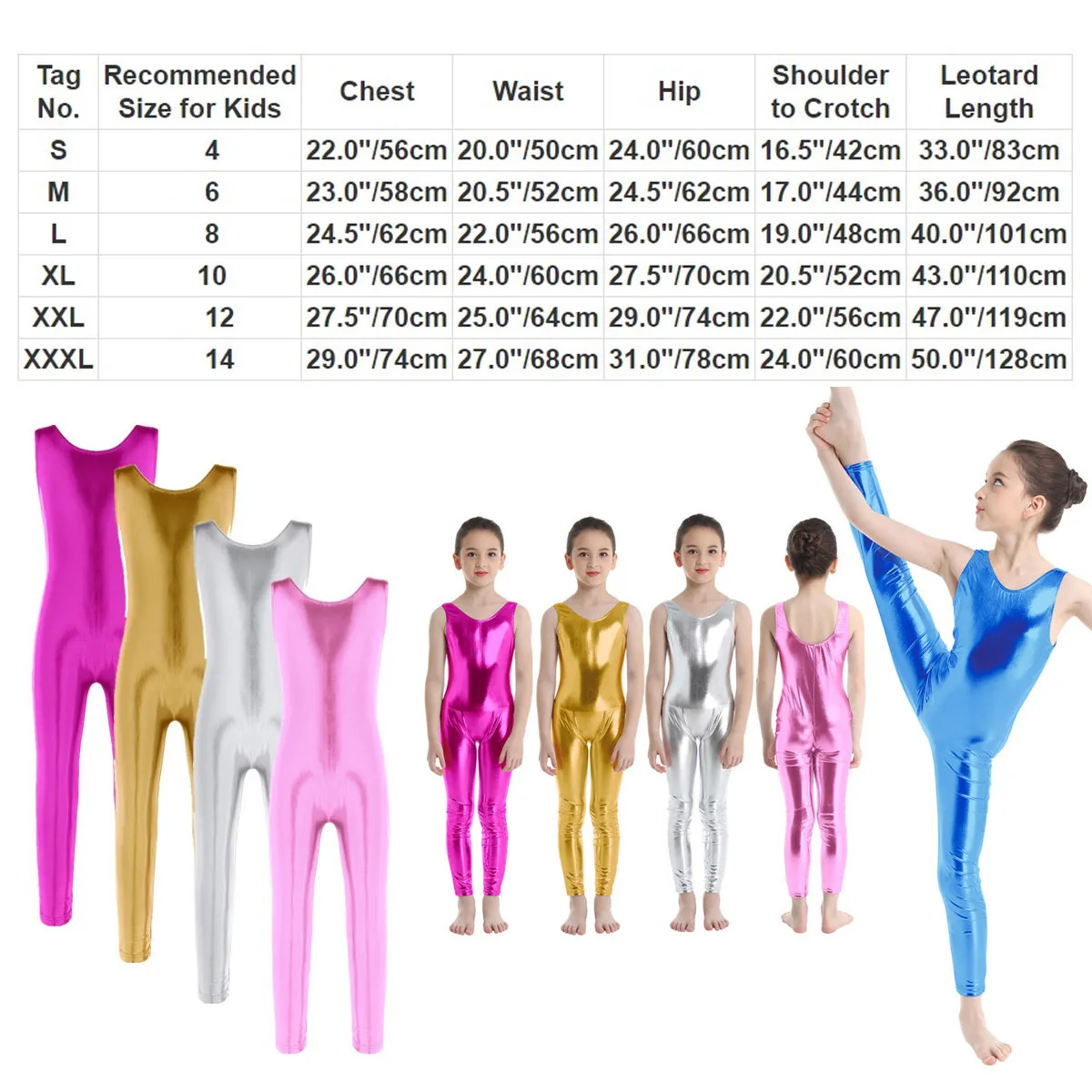 Glossy Metallic Ballet Gymnastics Leotard Bodysuit Jumpsuit Costume Kids Girls Ballerina Tank Unitard Performance Dancewear