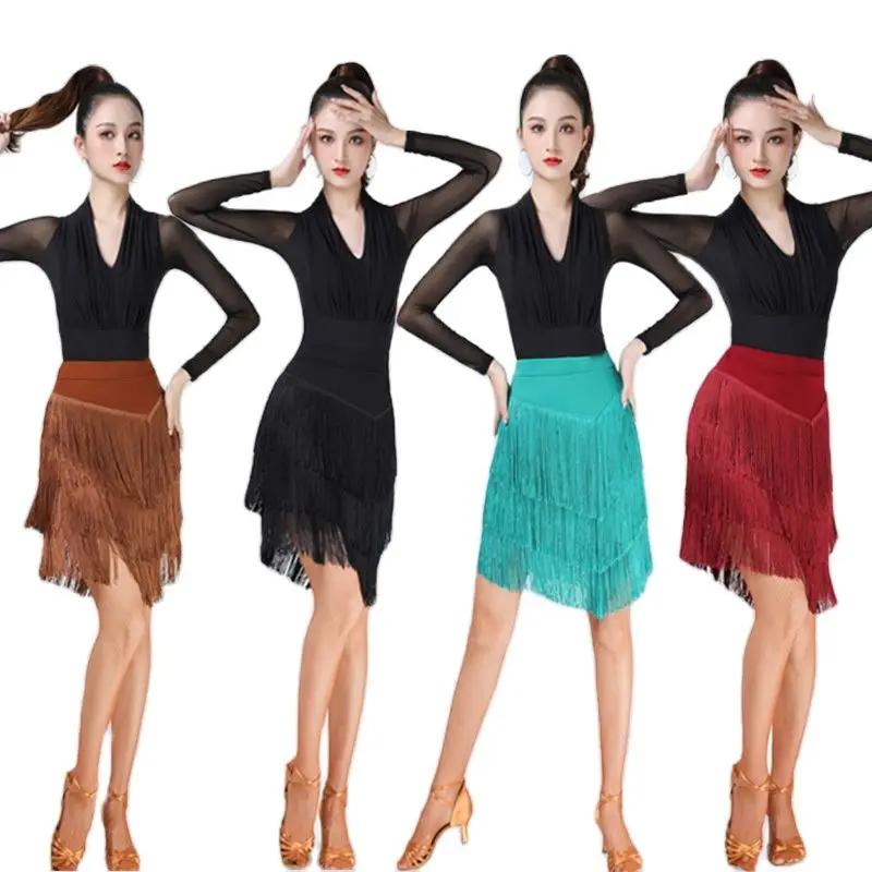 Name | New Latin Dance Dress for Women Practice Milk Silk Skirt Half-skirt with Tassels Bottom for Competition and Performance 2023 |