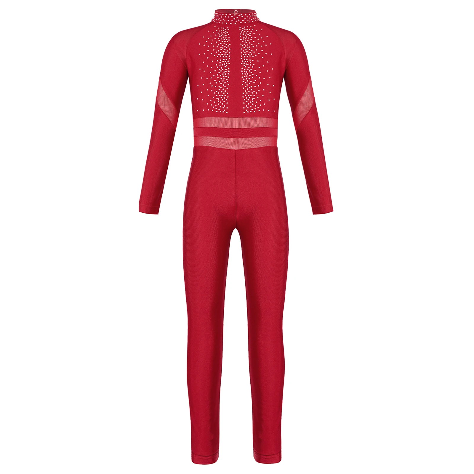 Kids Girls Gymnastics Ballet Leotards Shiny Figure Ice Skating Dance Costumes Ballerina Full Body Jumpsuit Unitard Dancewear