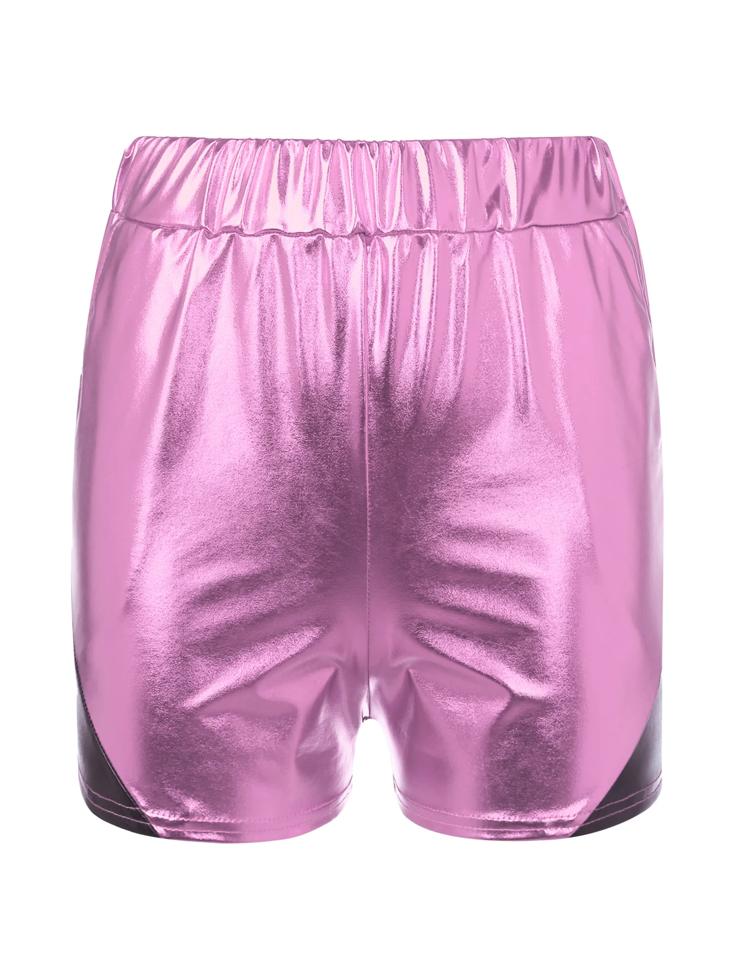 Womens Dance Boyshorts Rave Party Clubwear Metallic Shiny Hot Pants Elastic Waist Side Pockets Loose Shorts Sparkly Hot Pants