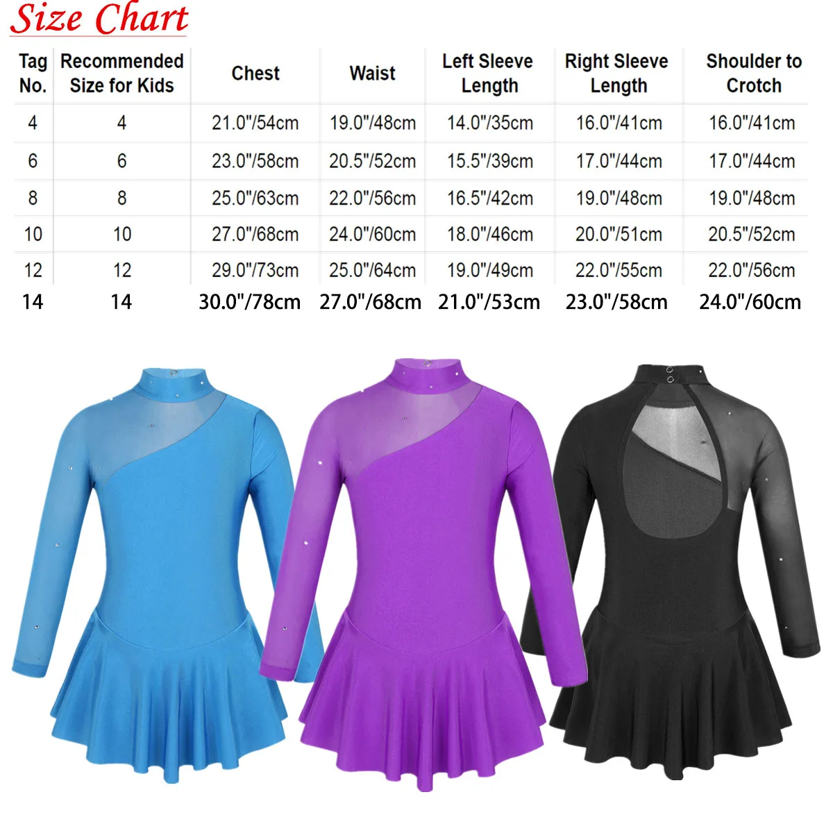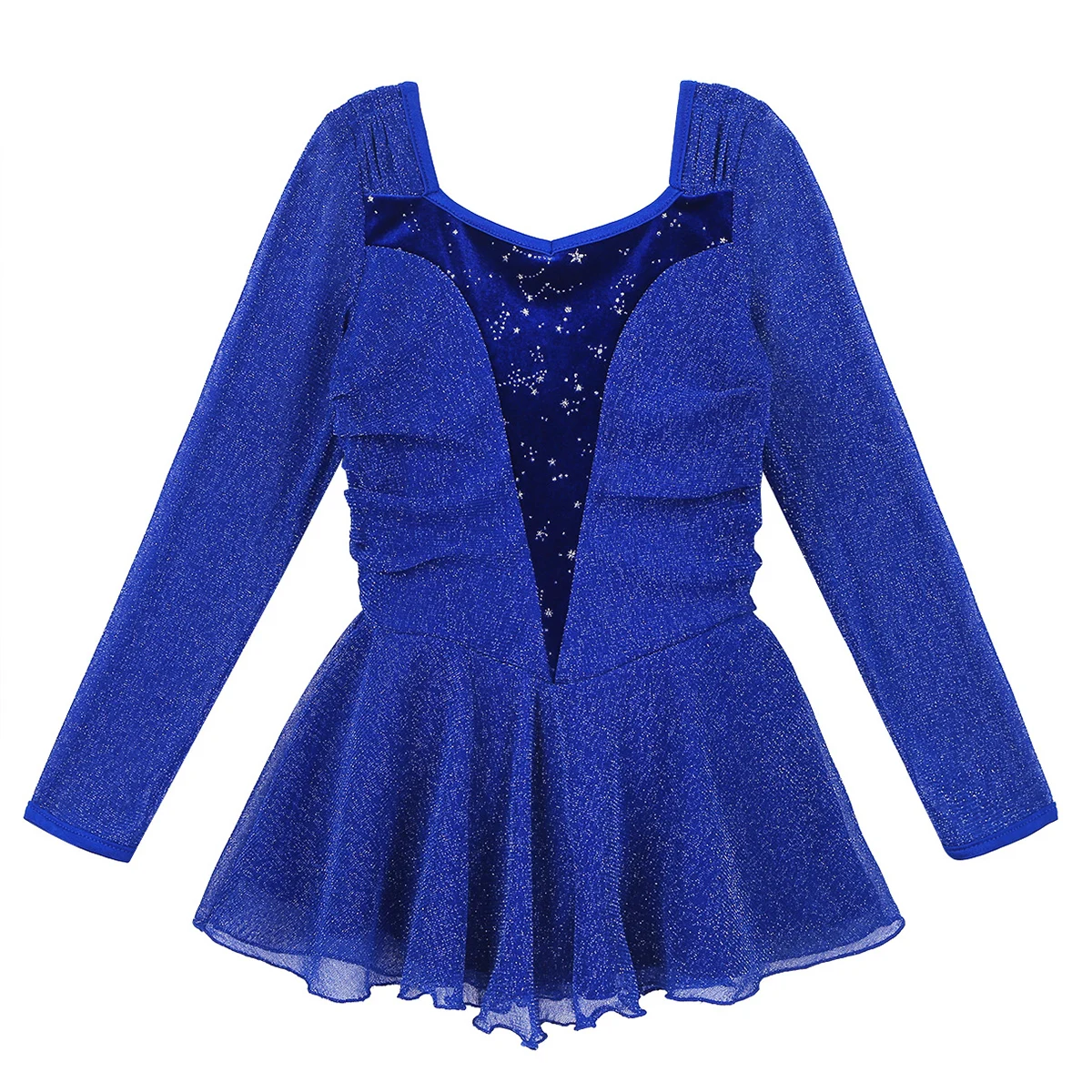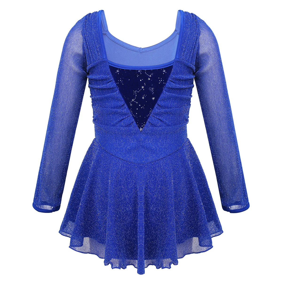 Name | Silver Glitters Figure Ice Skating Dress Kid Girls Shiny Velvet Splice Long Sleeves Ballet Dress Gymnastics Leotard Dancewear |