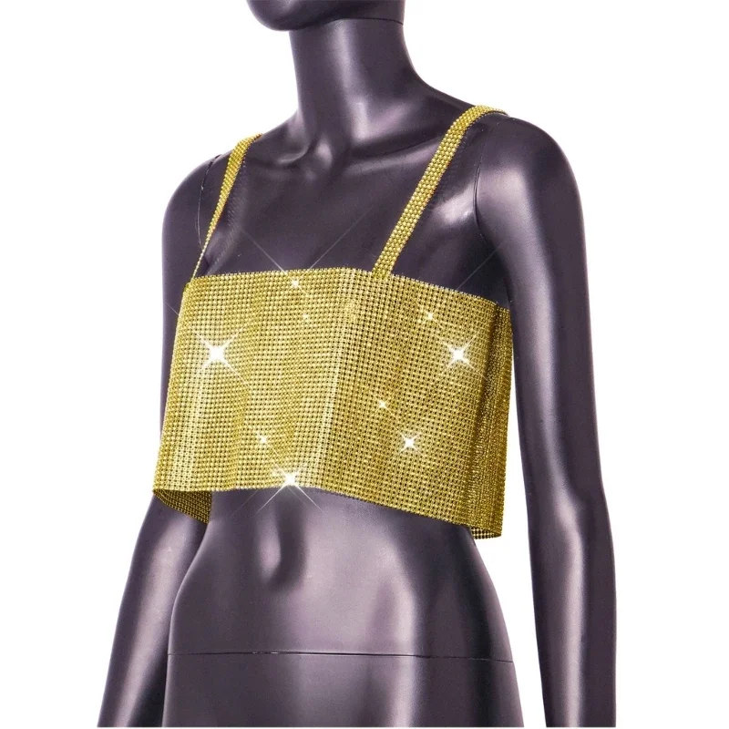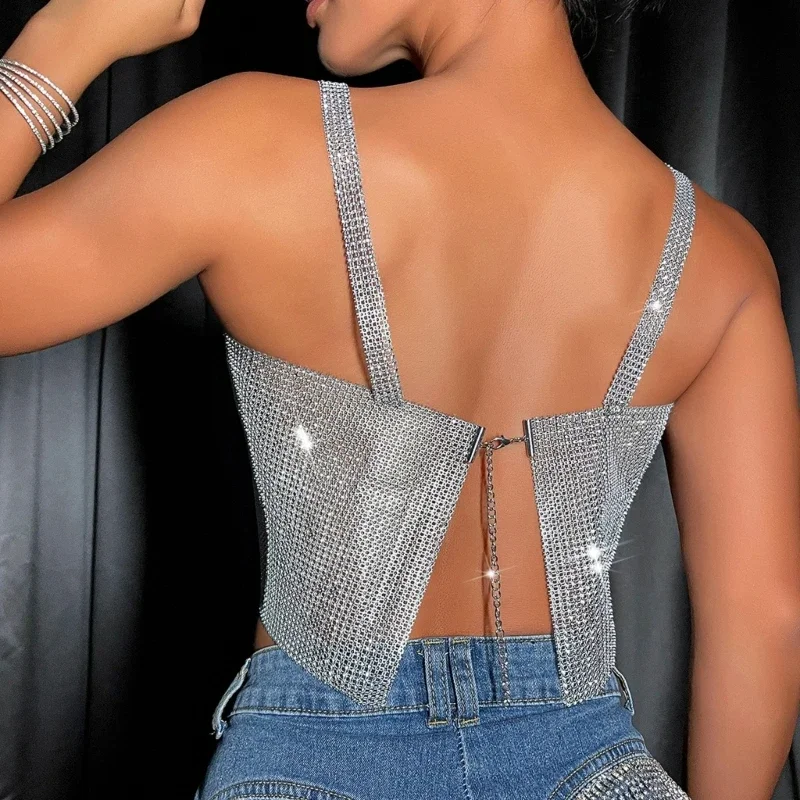 Women Sexy Rhinestones Crop Top Crystal Tops Backless Summer Beach Outfits Nightclub Stage Wear R7RF